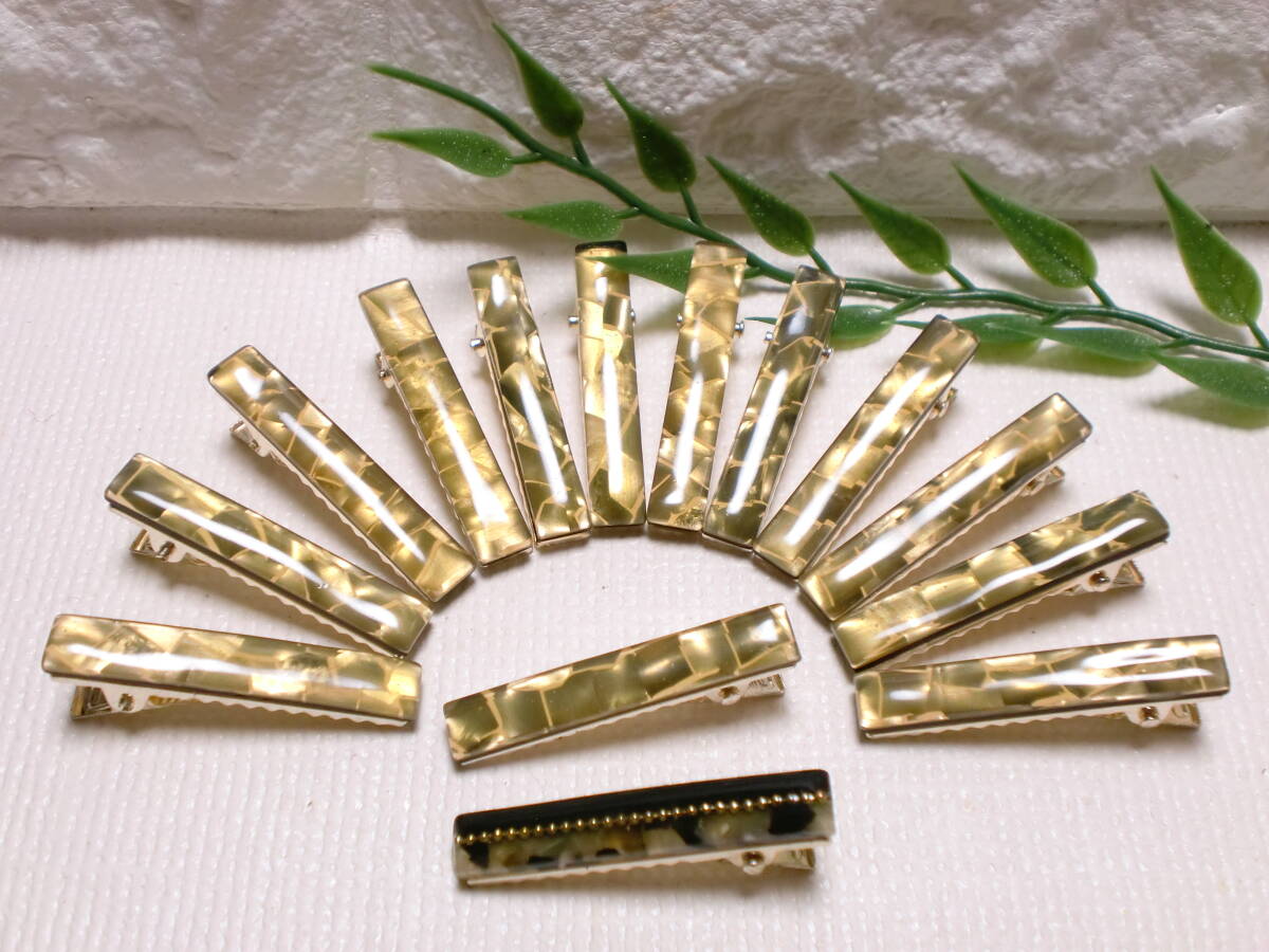 14個♪■シェル調ダークゴールドのヘアクリップ♪■43mm■きれいカラー♪