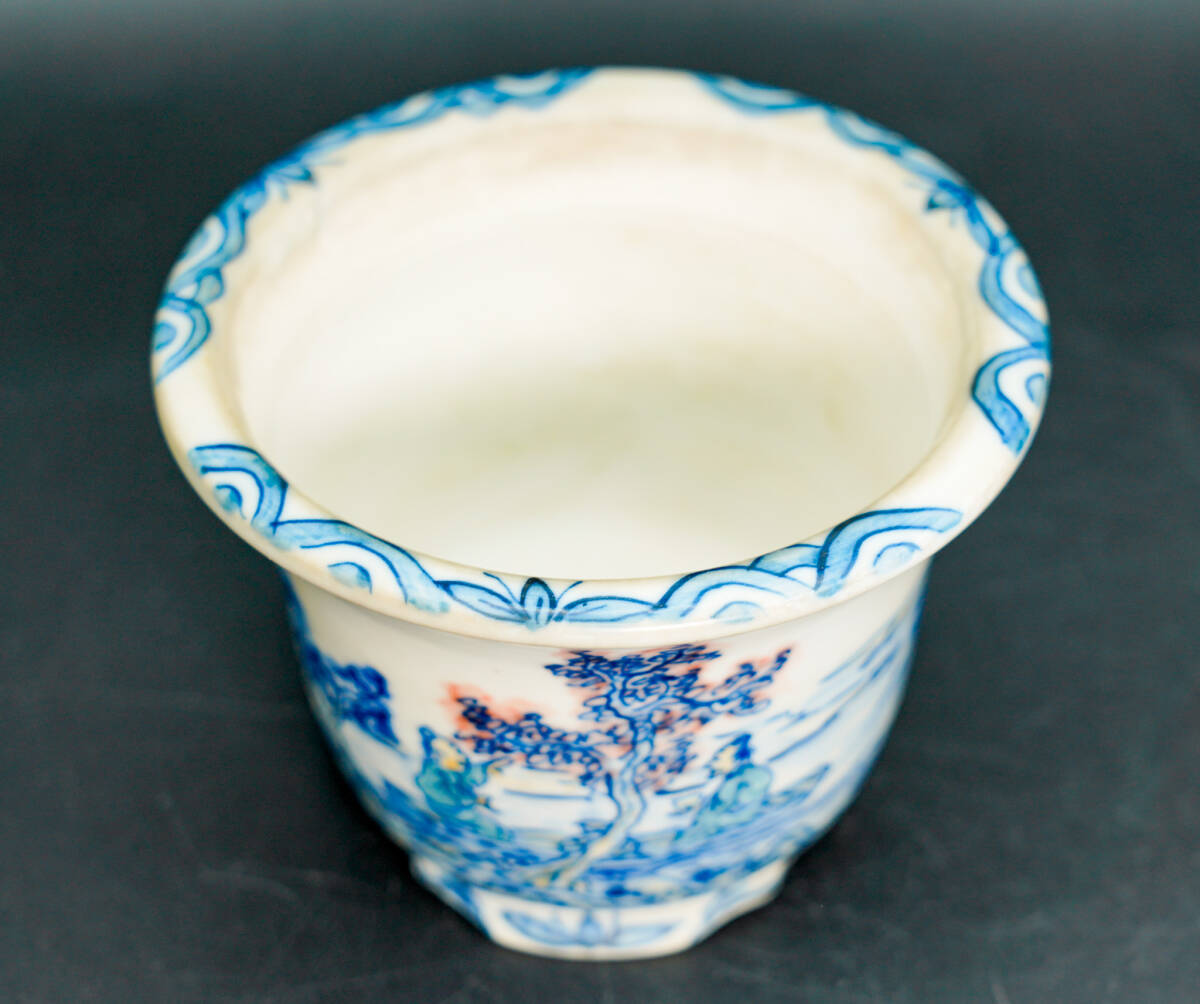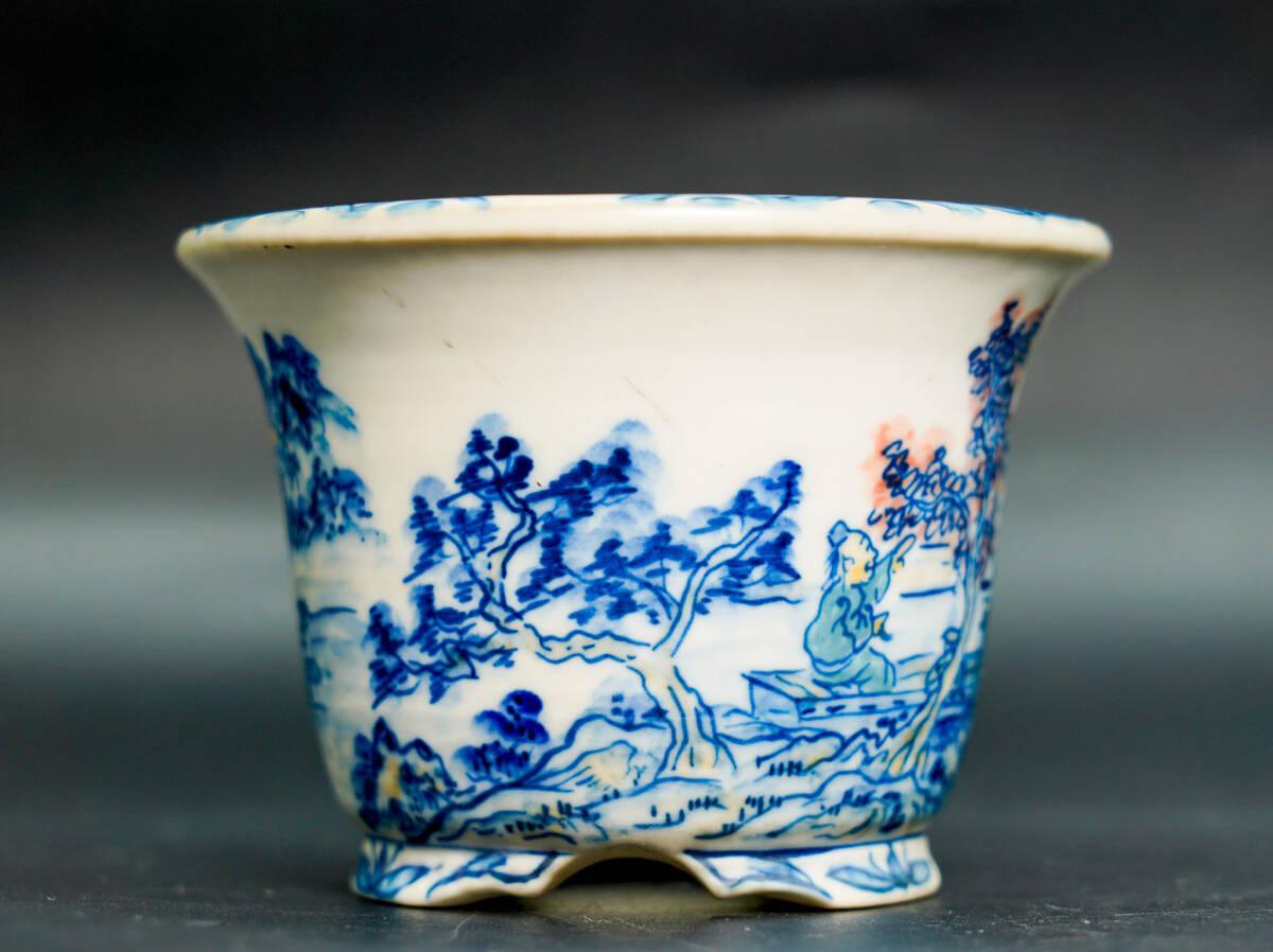 【翠】陶翠 色絵 山水人物図 丸鉢【盆栽鉢】
