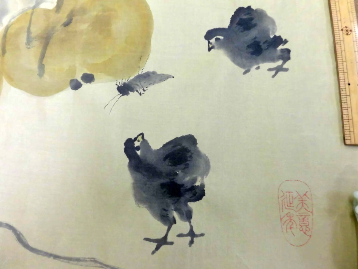 | まくり 瓜と鶏図 絹本 | |||