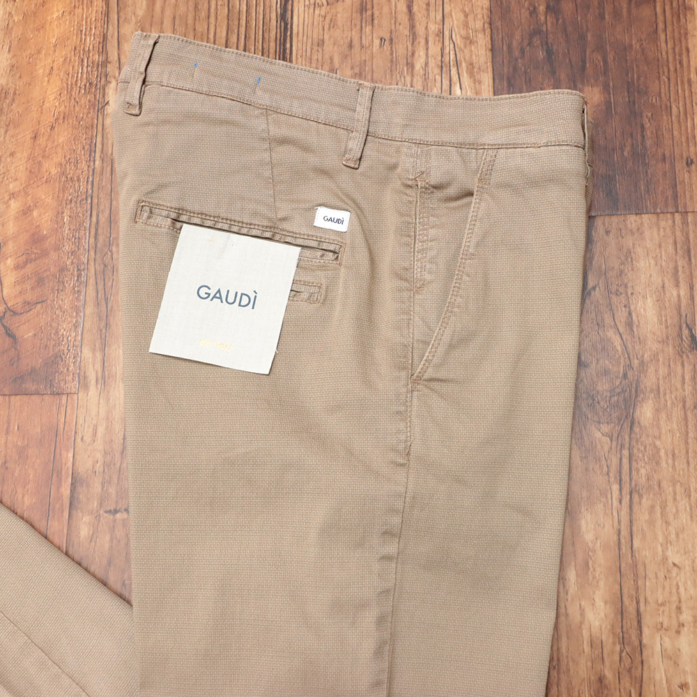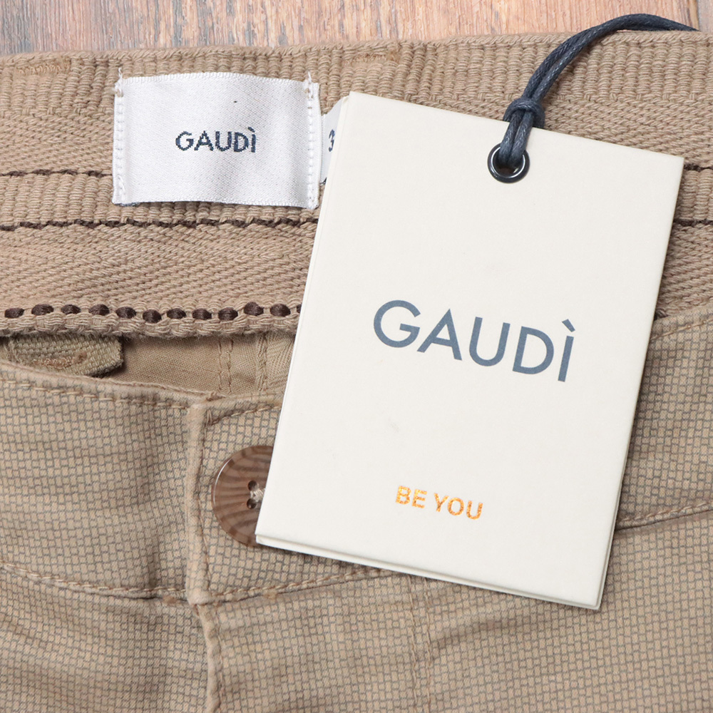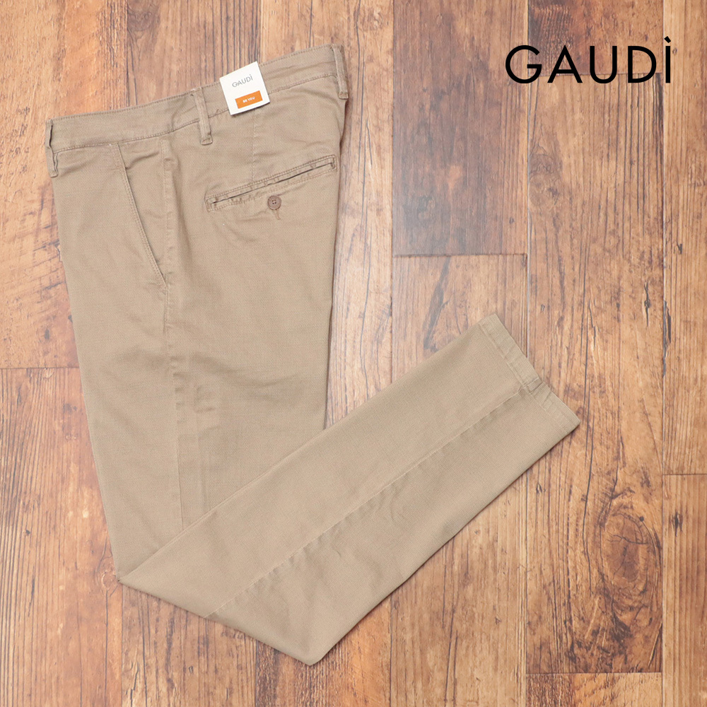 25SS/GAUDI/34インチ/美脚チノ パンツ C511GU25029 ストレッチ 幾何学柄 製品染め加工 快適 楽ちん ガウディ 今期物 新品/ベージュ/kf235/