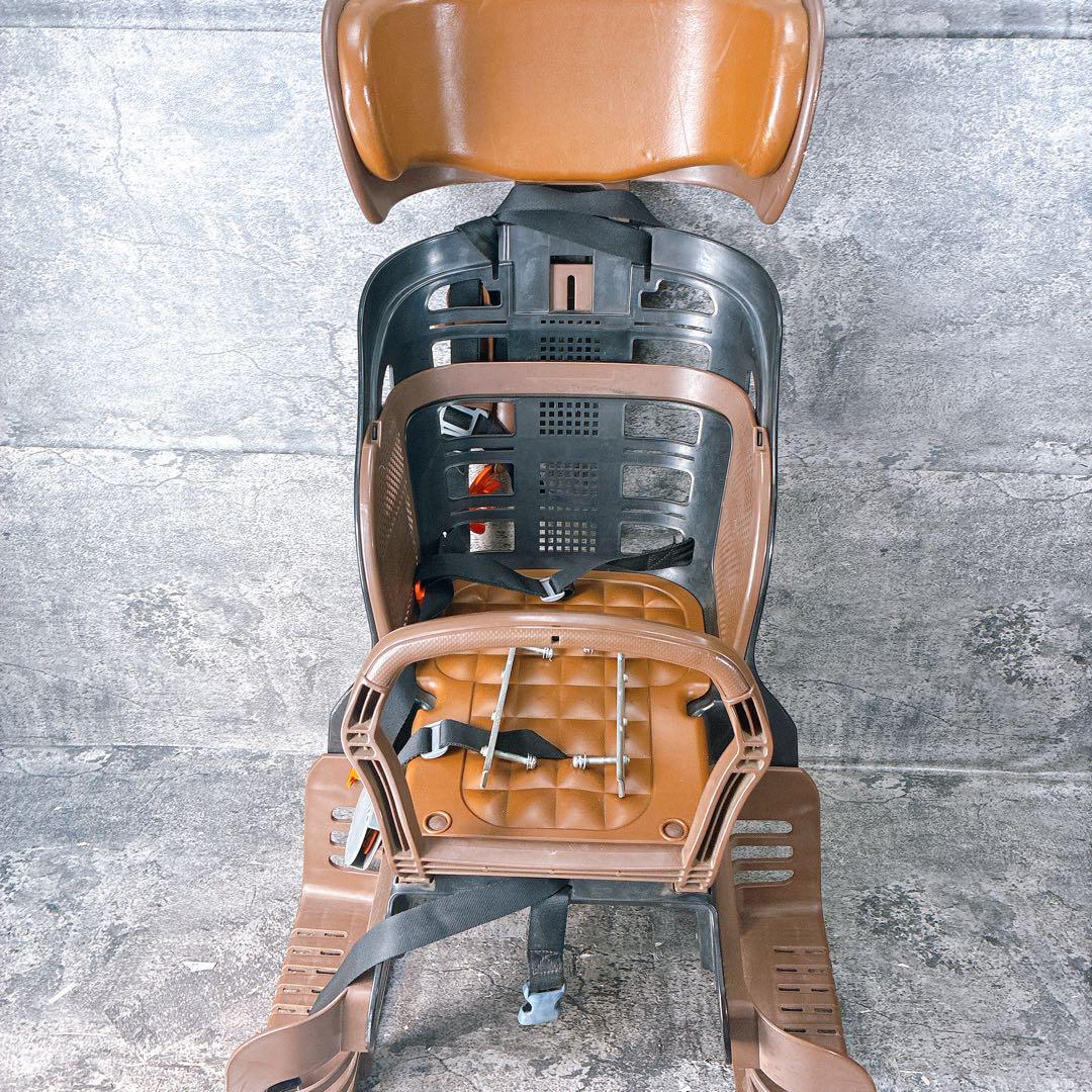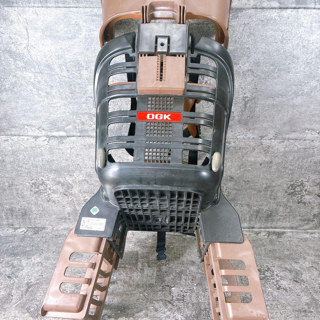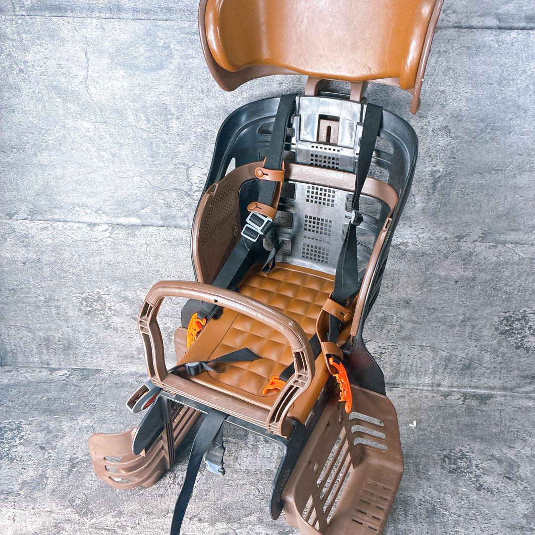 OGK製のブラウン自転車用チャイルドシート、安全ベルト付きで安心。