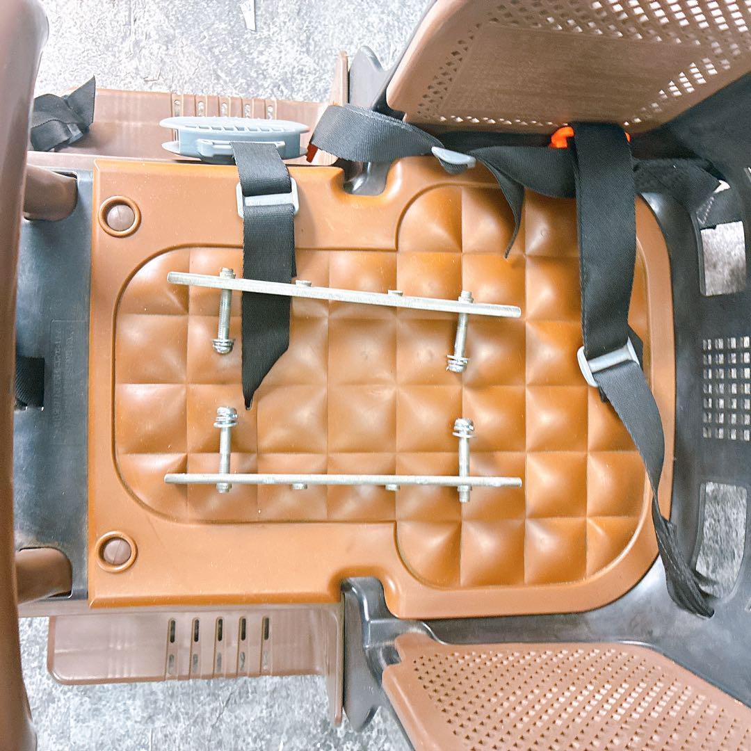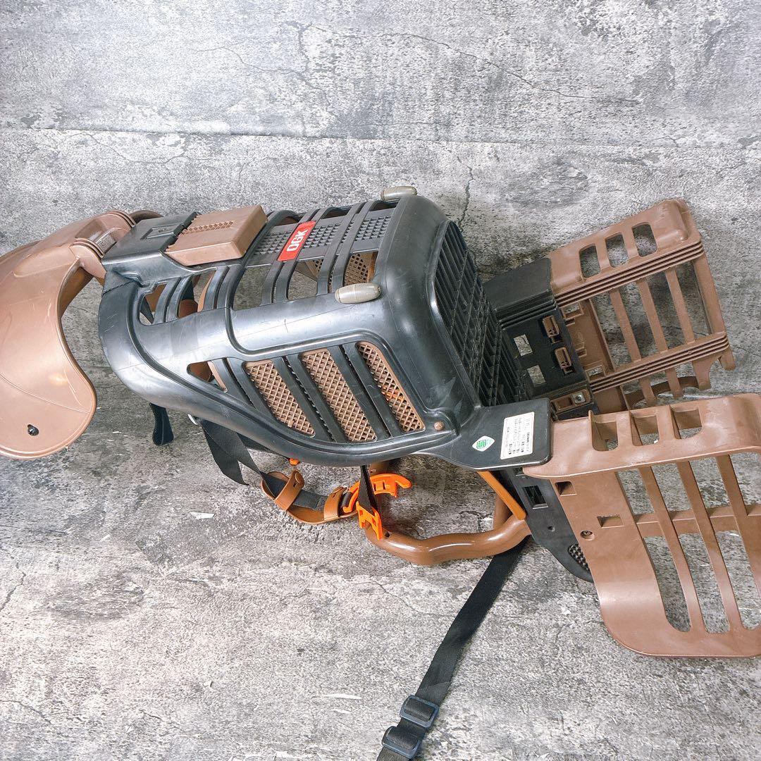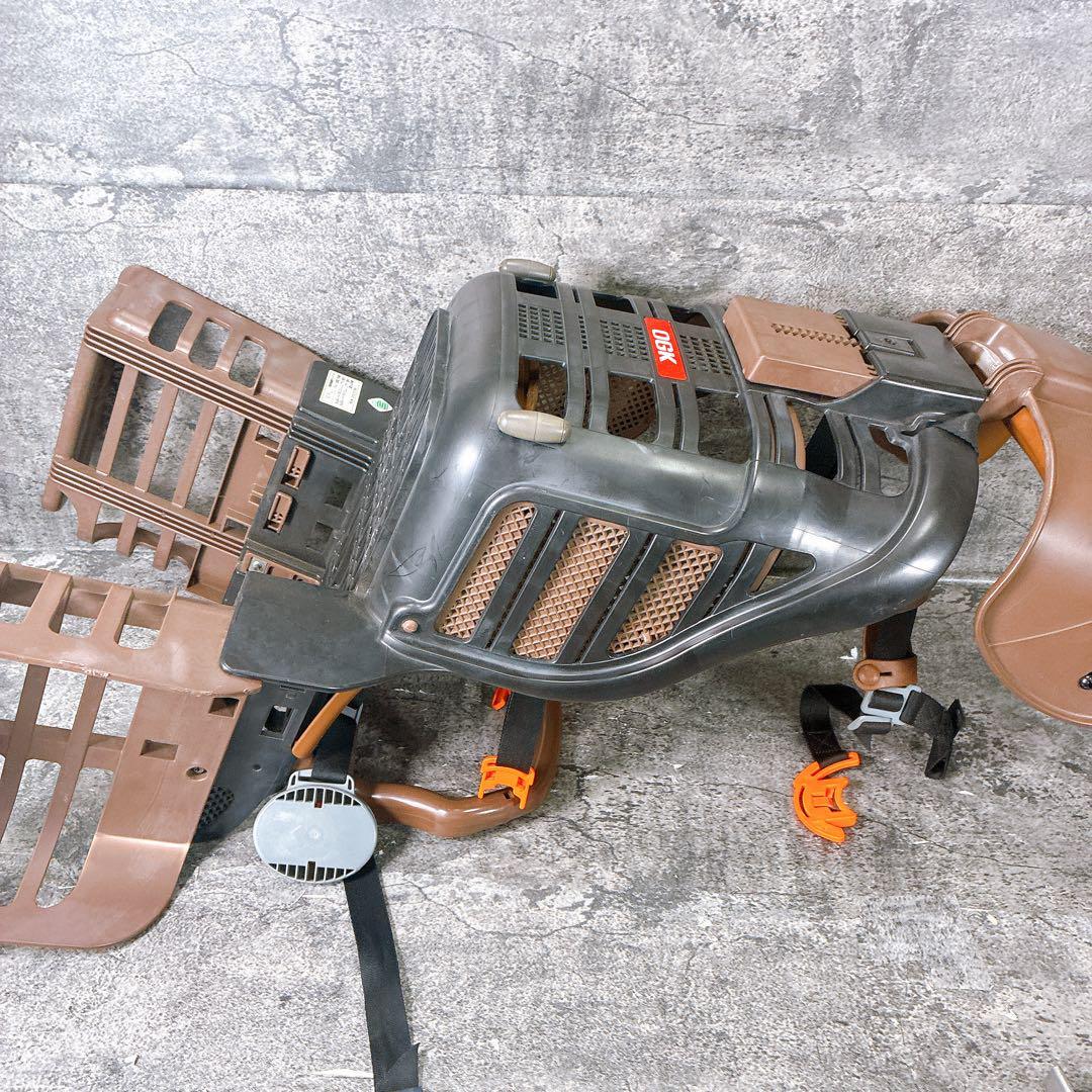 OGK製のブラウン自転車用チャイルドシート、安全ベルト付きで安心。