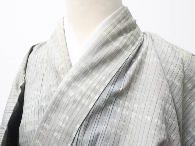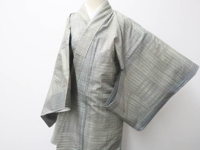 リサイクル商品のため、衿汚れと袖口薄汚れがございますが着用可能なお品です。 地色は 灰です。 1枚目の画像が近いお色かと思われます。 素材は正絹です。 |