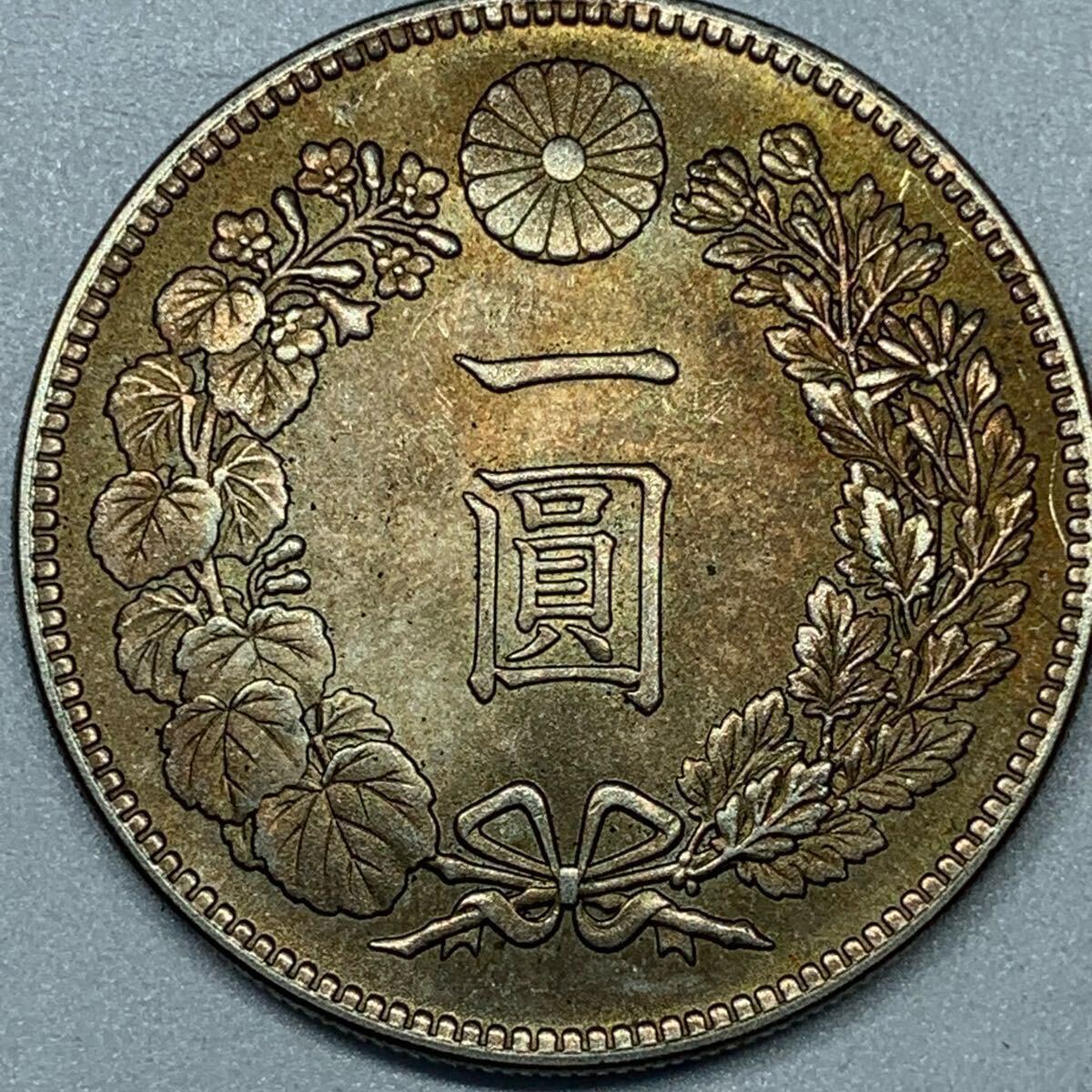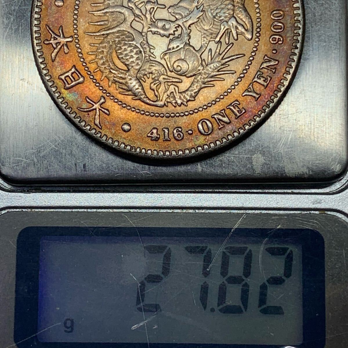 日本古銭 新1円銀貨 明治二十四年 明治24年 貨幣 竜 菊紋 貿易銀 一円銀貨 大型銀貨 一圓銀貨 古錢 古銭 k-720