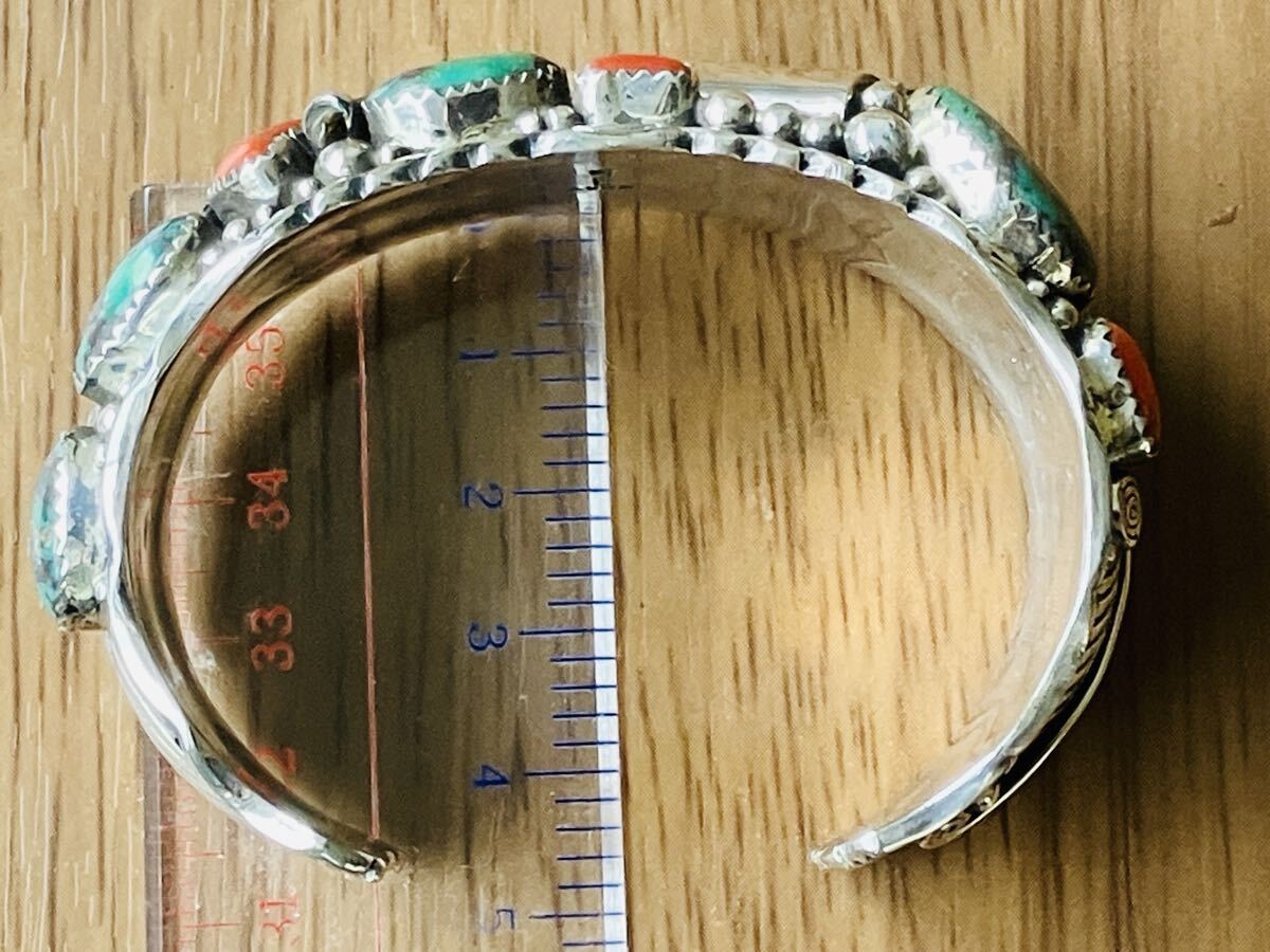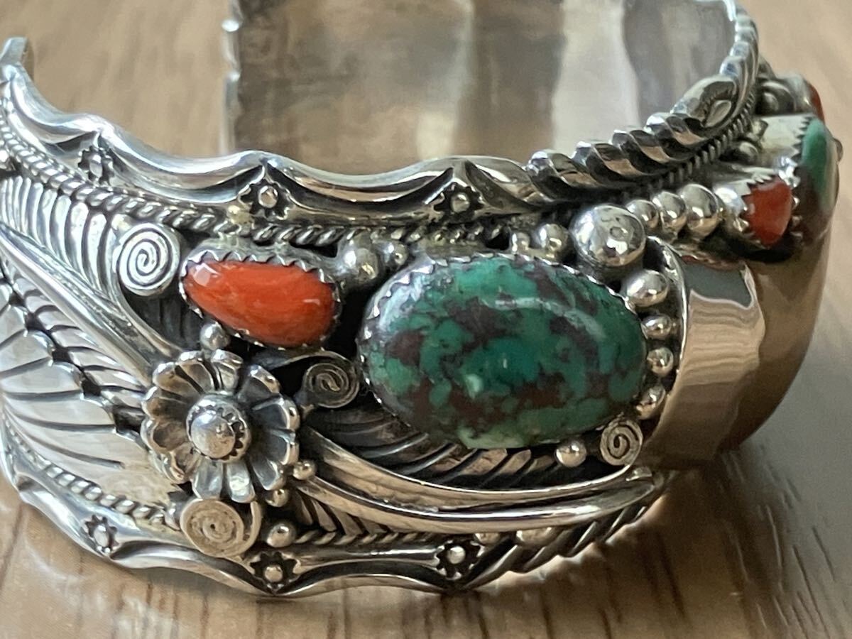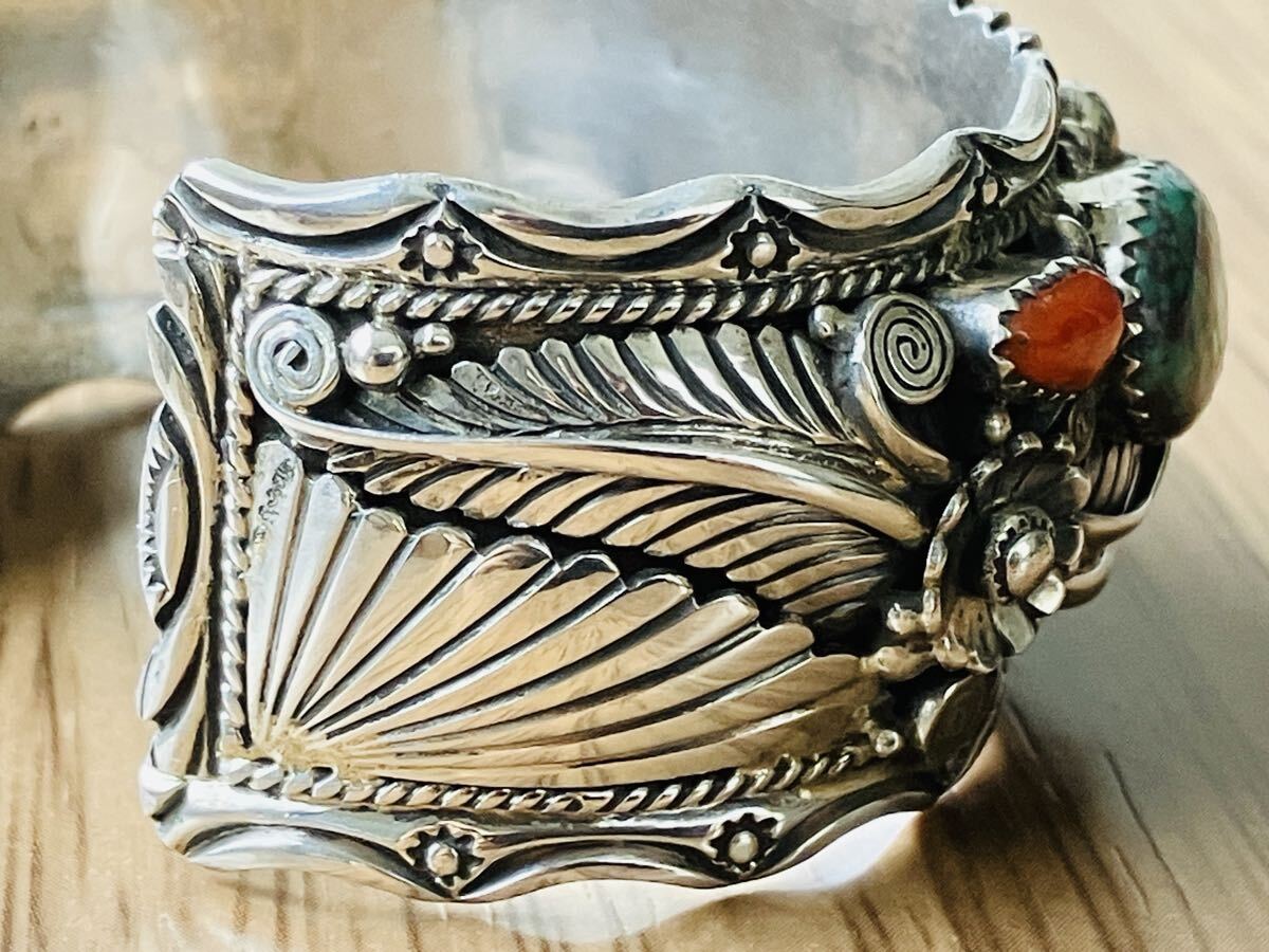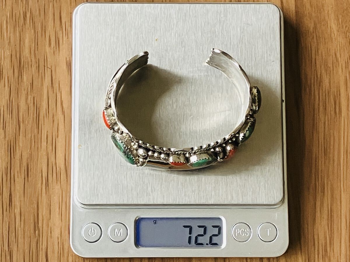 インディアンジュエリー バングル シルバー925 ブレスレット ターコイズ コーラル ベアクロー ナバホ族 Navajo 未使用