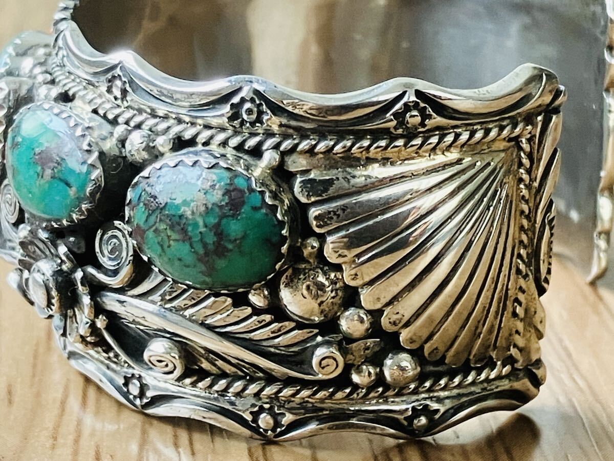 ネイティブアメリカン、ナバホ族の銀細工職人制作のバングルです。