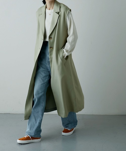キーワード:トレンチコート コート レディース ロング丈 無地 秋 冬