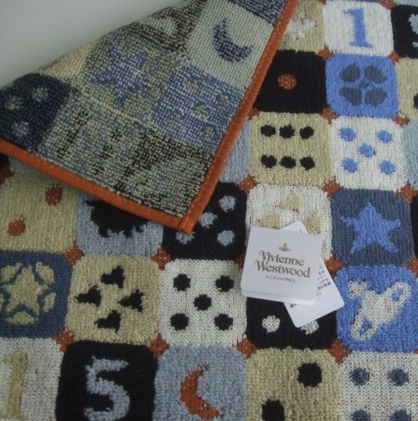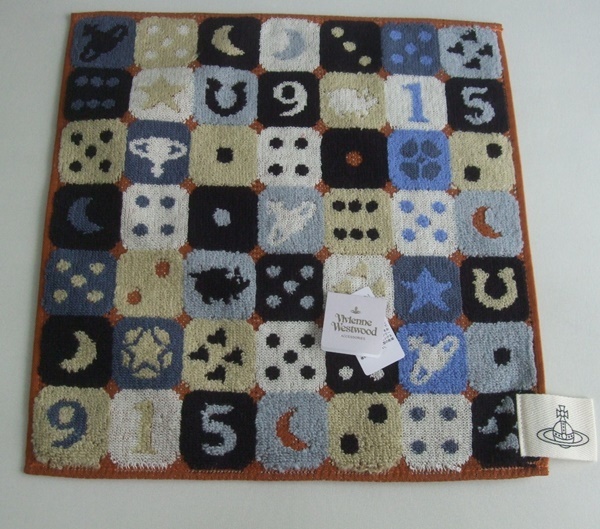 Vivienne Westwood ヴィヴィアン・ウエストウッド チェック dice ダイス サイコロ柄 タオル ハンカチ 未使用品 ブラウン系