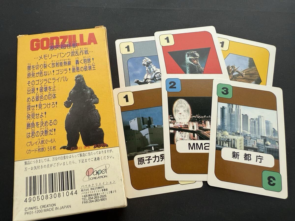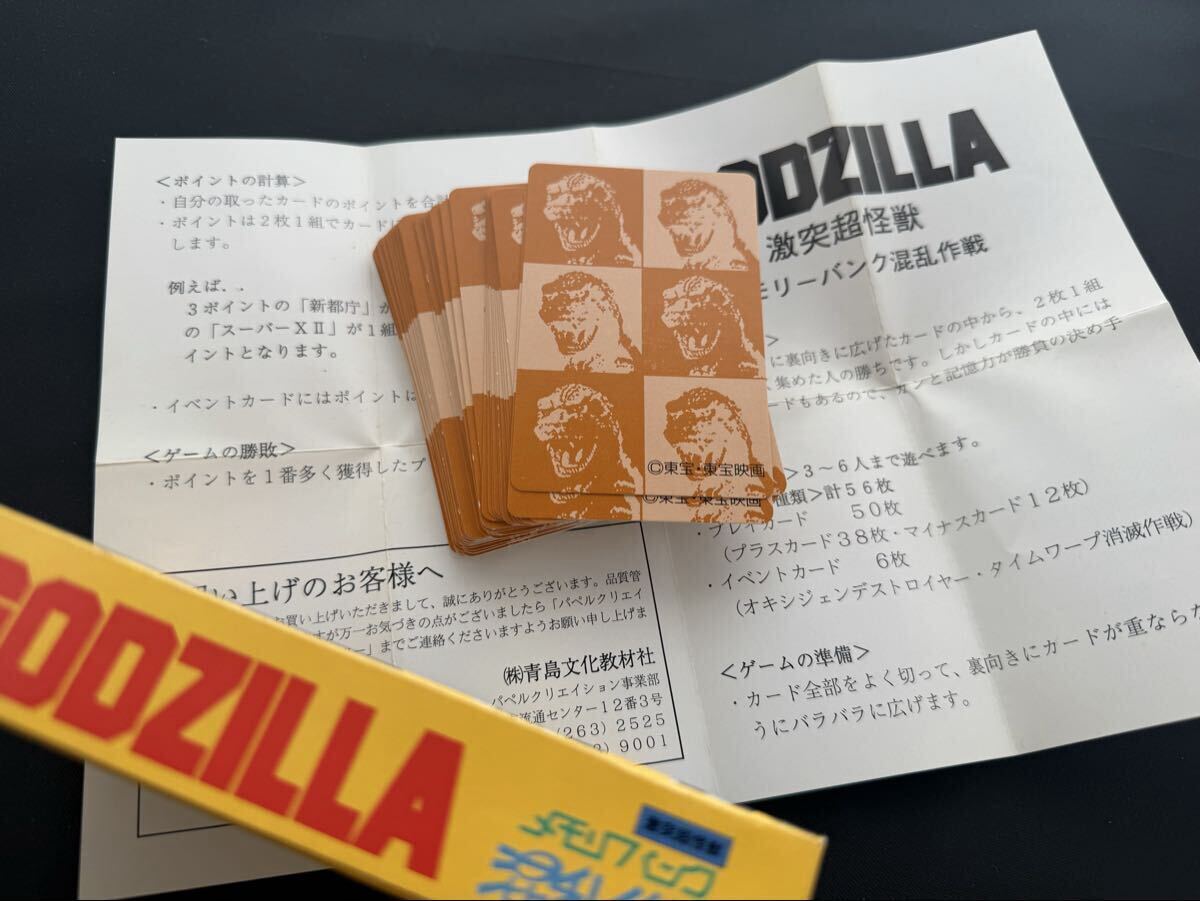闇を切り裂く放射能熱線!轟く咆哮!原発が危ない!ゴジラ!最悪の破壊王、そのゴジラライバル出現!破壊を止める銀色の巨体、探せ!見つけろ!発見せよ!勝負を決めるのは君の決断だ!プレイ人数 2~6人カード枚数 56枚って大袈裟な笑商品説明ですが…ゴジラ推しのオフ会なら主役になれるカードゲームかもしれません、神経衰弱ですけどね笑