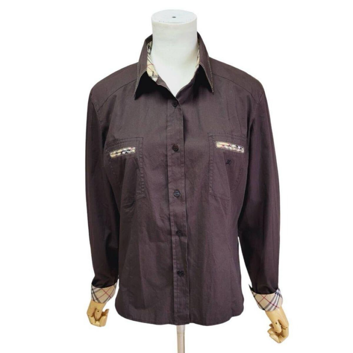 大きいサイズ42 バーバリーロンドン ノバチェック ホース刺繍 長袖シャツ ブラウス ダークブラウン BURBERRY LONDON スペイン 赤タグ