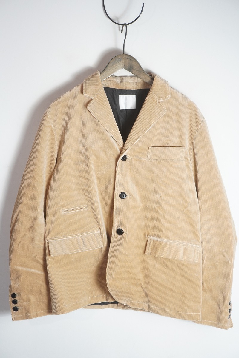 コーデュロイのテーラードジャケットで秋シーズンにリラックスしたカジュアルな雰囲気で着こなすことができるアイテムです。