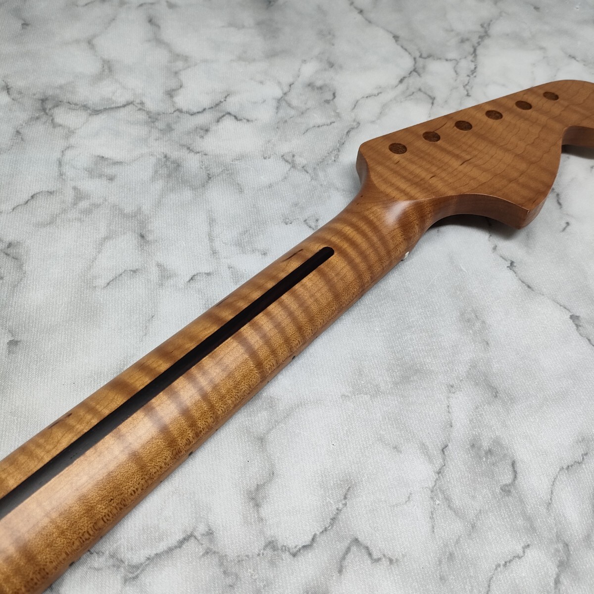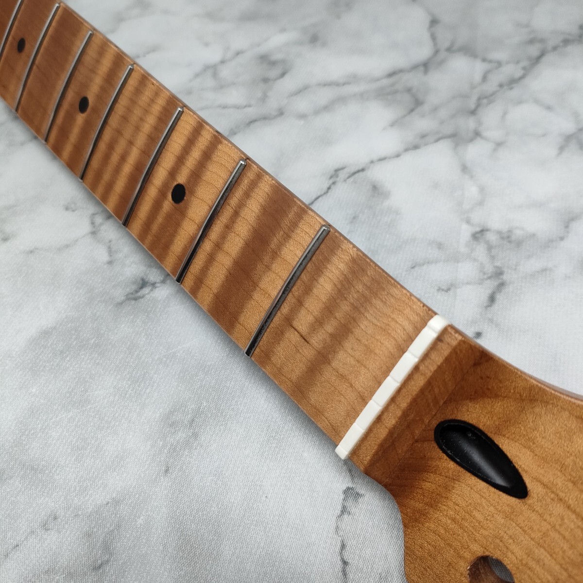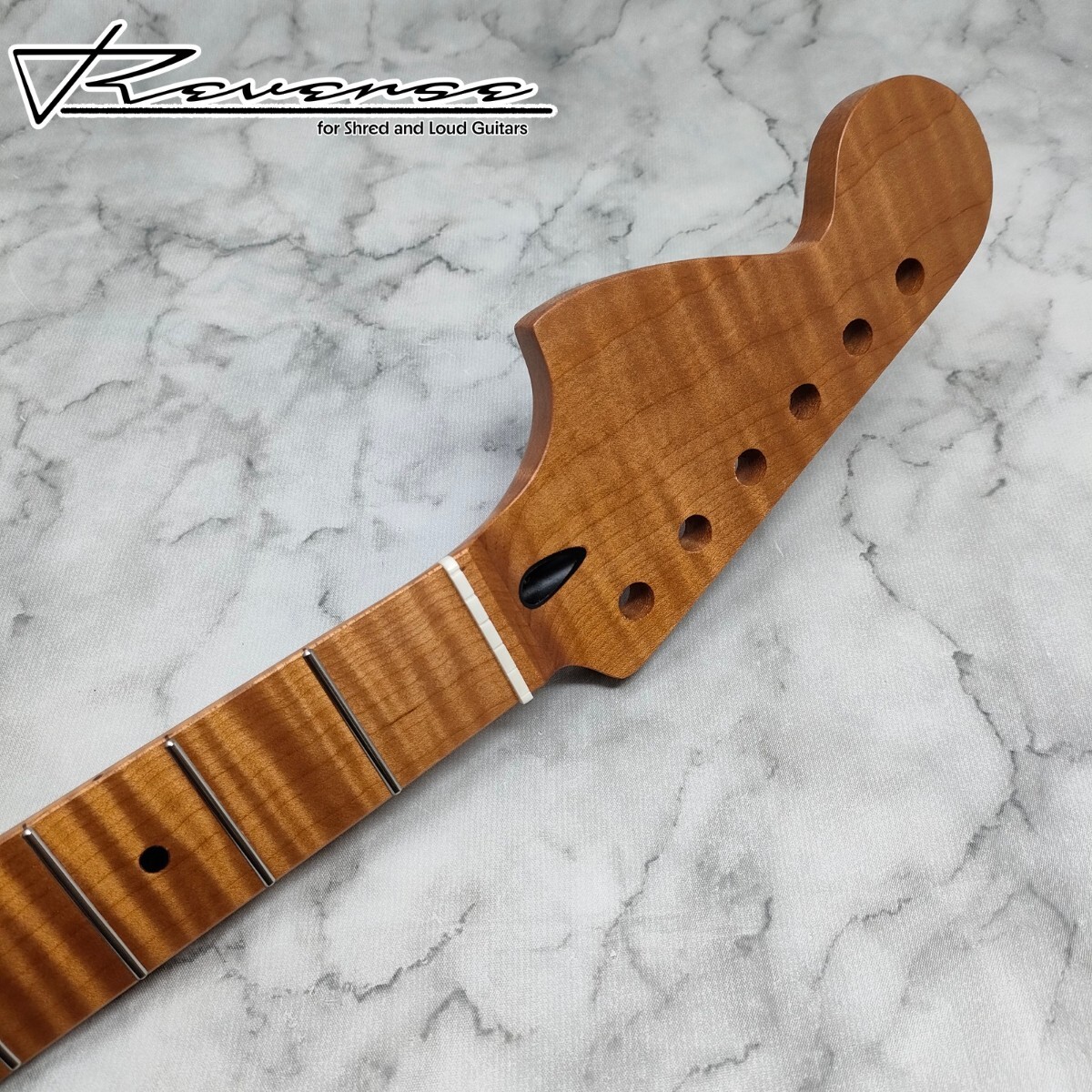 新品リバースヘッド フレイムメイプル ギターネック 22F ローステッド リバースラージ