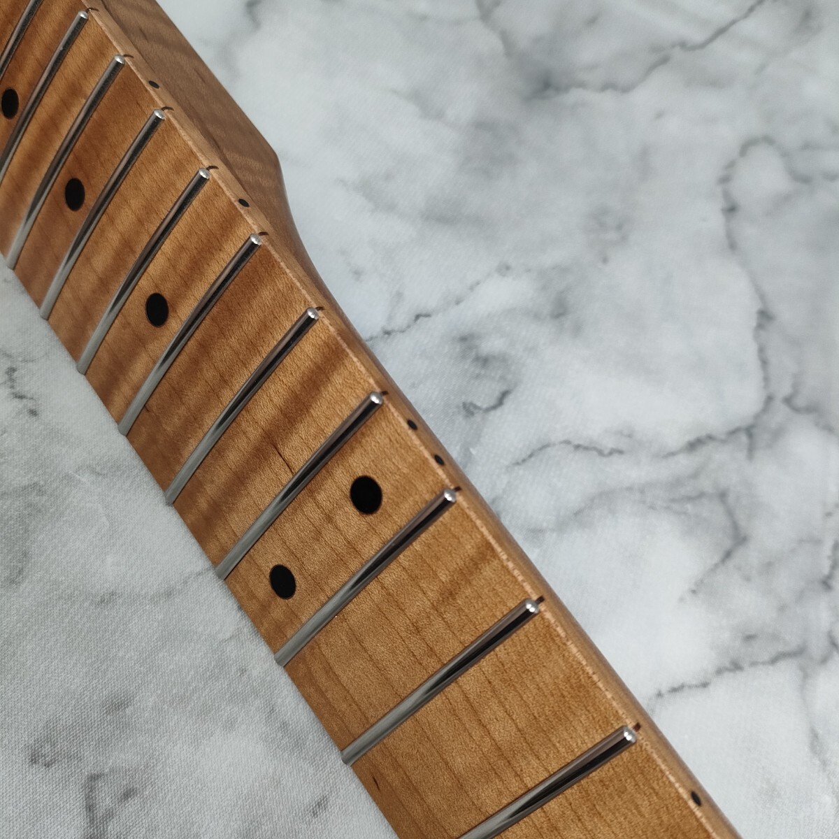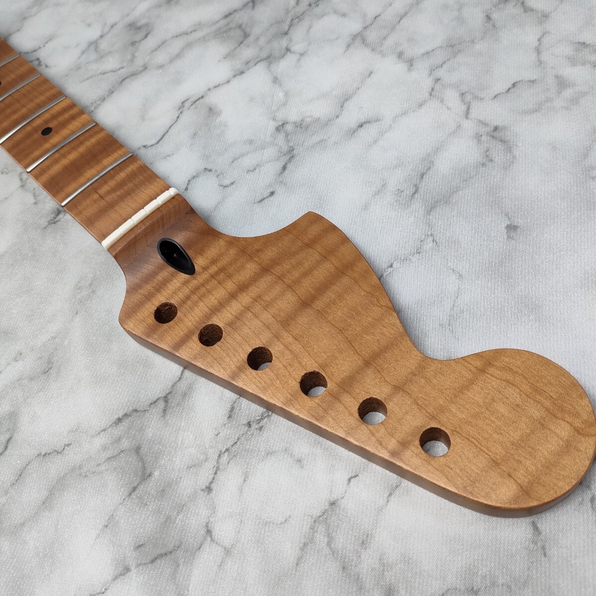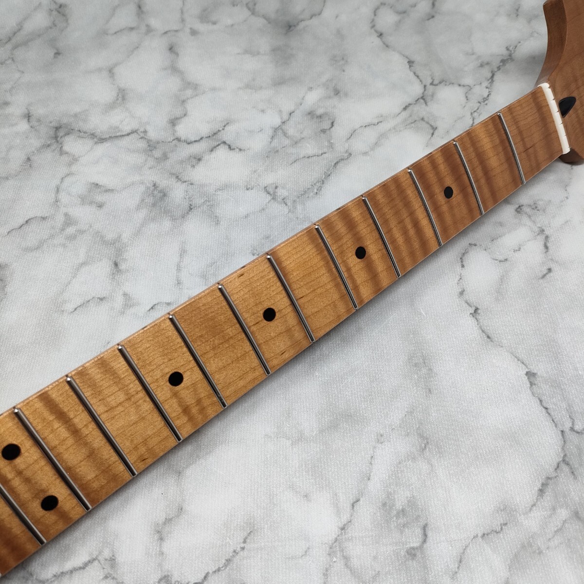 新品リバースヘッド フレイムメイプル ギターネック 22F ローステッド リバースラージ