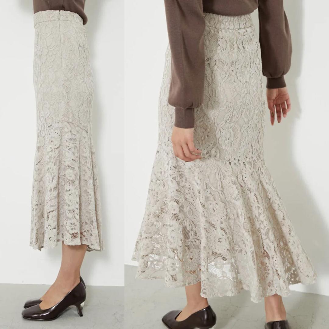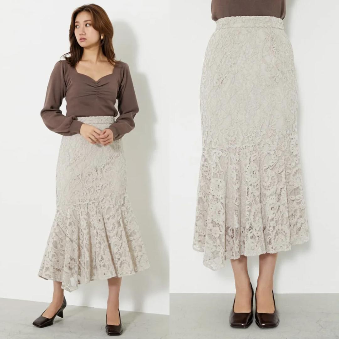 rienda リエンダ レースヘムマーメイドジャストウエストスカート