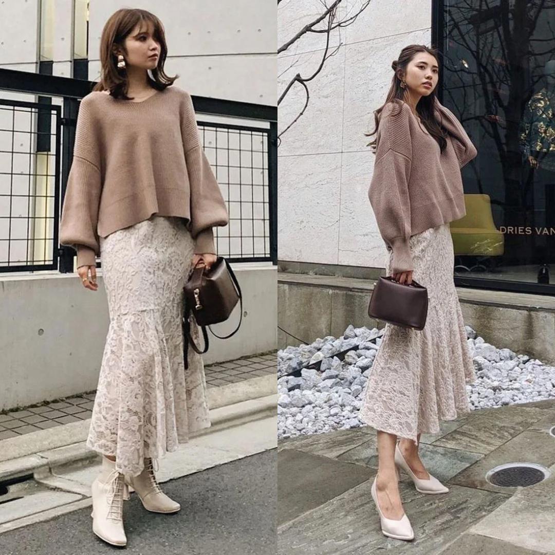 ヒップ下からボリュームを出し広がっていくシルエットがポイントで裾の絶妙なヘムが今年らしいマーメイドスカートです。