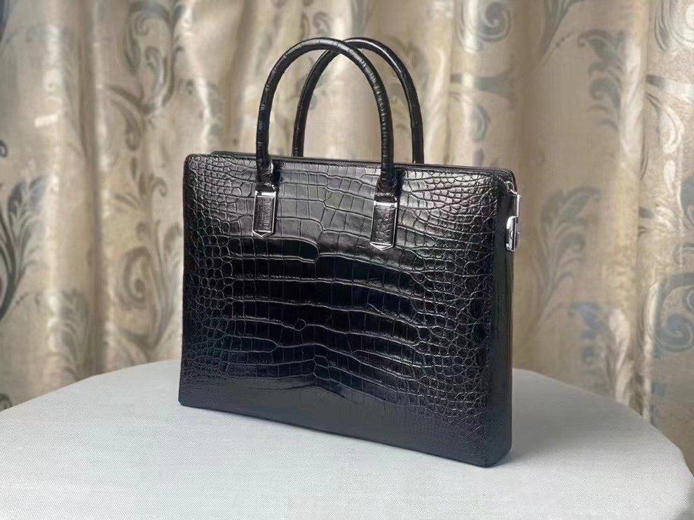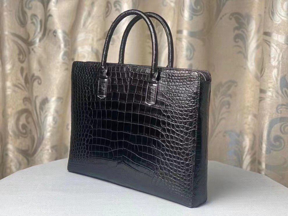 ※逸品※ クロコダイルレザー本物 センター取り 腹革使用 ワニ革 メンズバッグ ビジネス 総本革 ハンドバッグ 書類鞄 A4 ブリーフケース