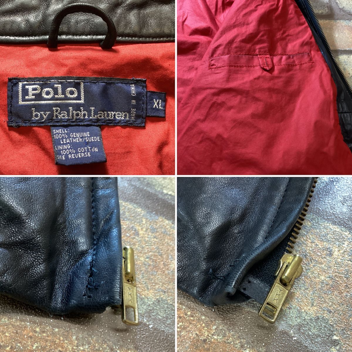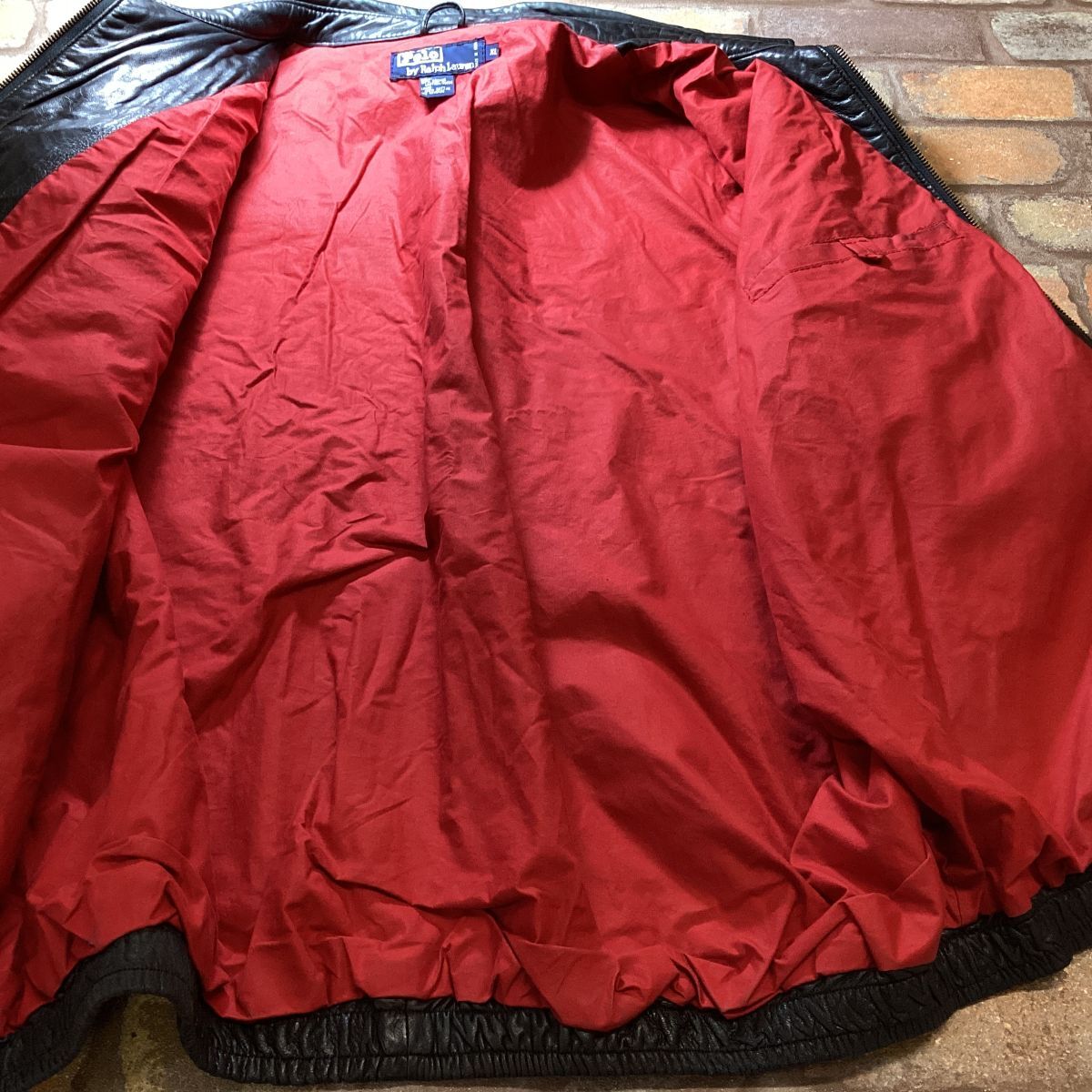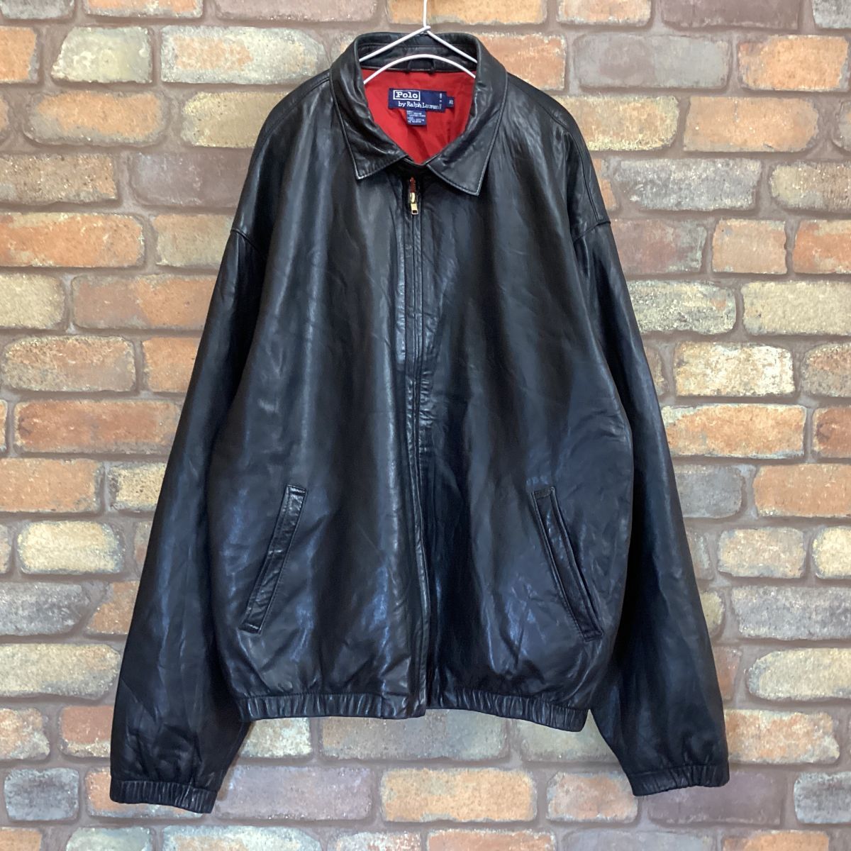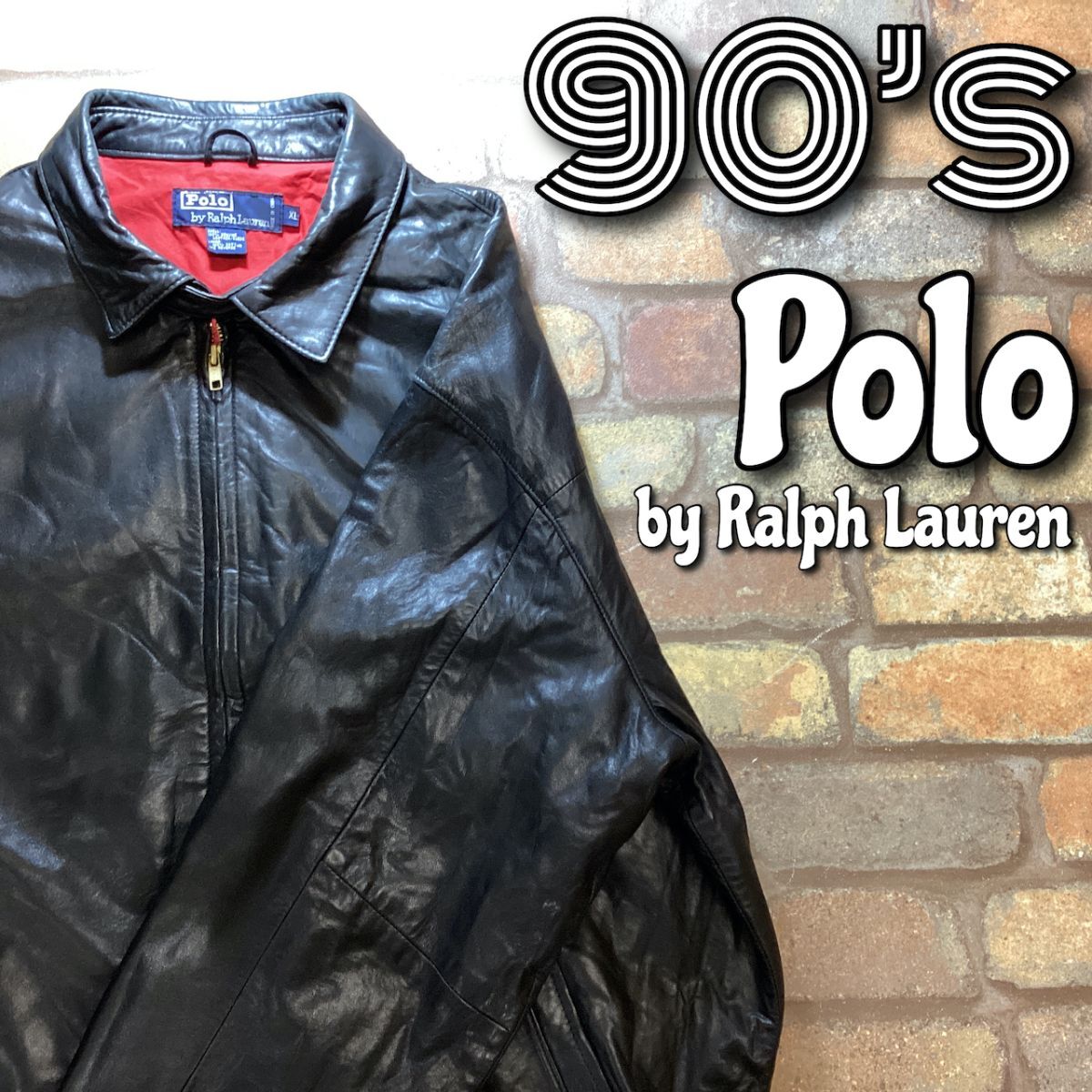 ★稀少モデル★90s 正規品★ 【Polo by Ralph Lauren ラルフローレン】赤裏地 本革 ドリズラージャケット 革ジャン【メンズ XL】黒 K3-329
