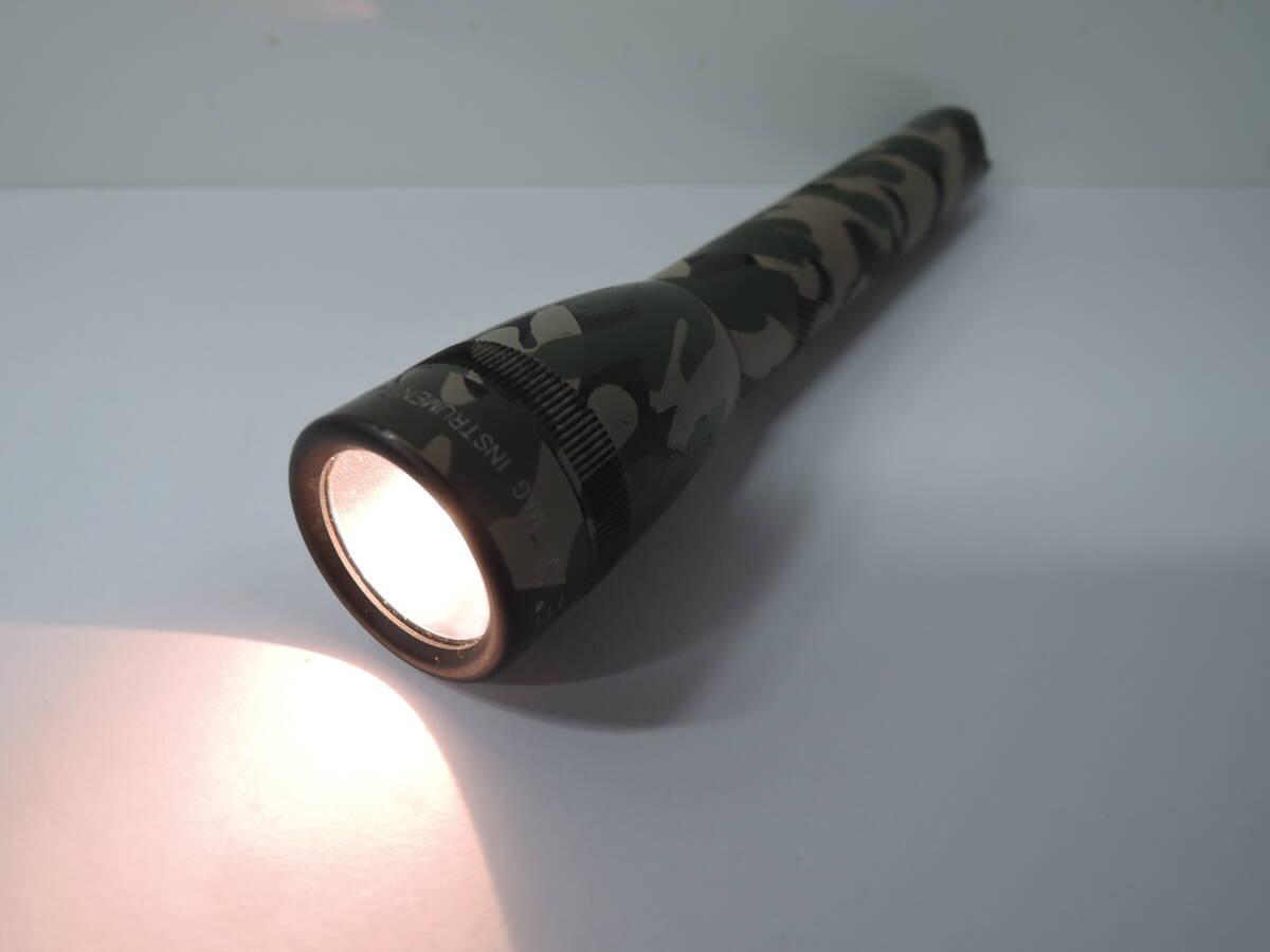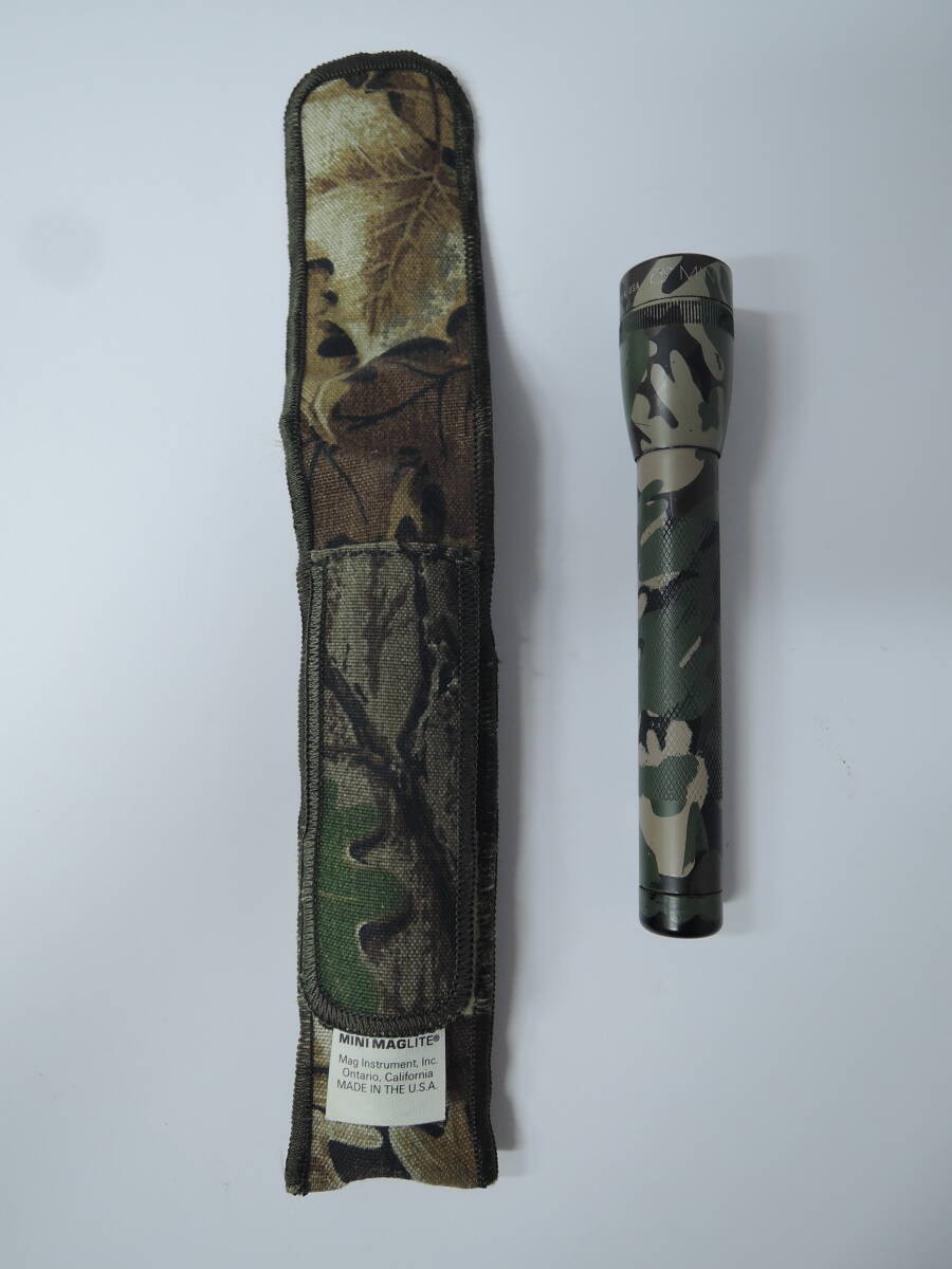 ミニ マグライト 迷彩柄 ケース付 アメリカ製 MINI MAGLITE MADE IN USA カモフラージュ柄 中古品 点灯確認済み アウトドア キャンプ
