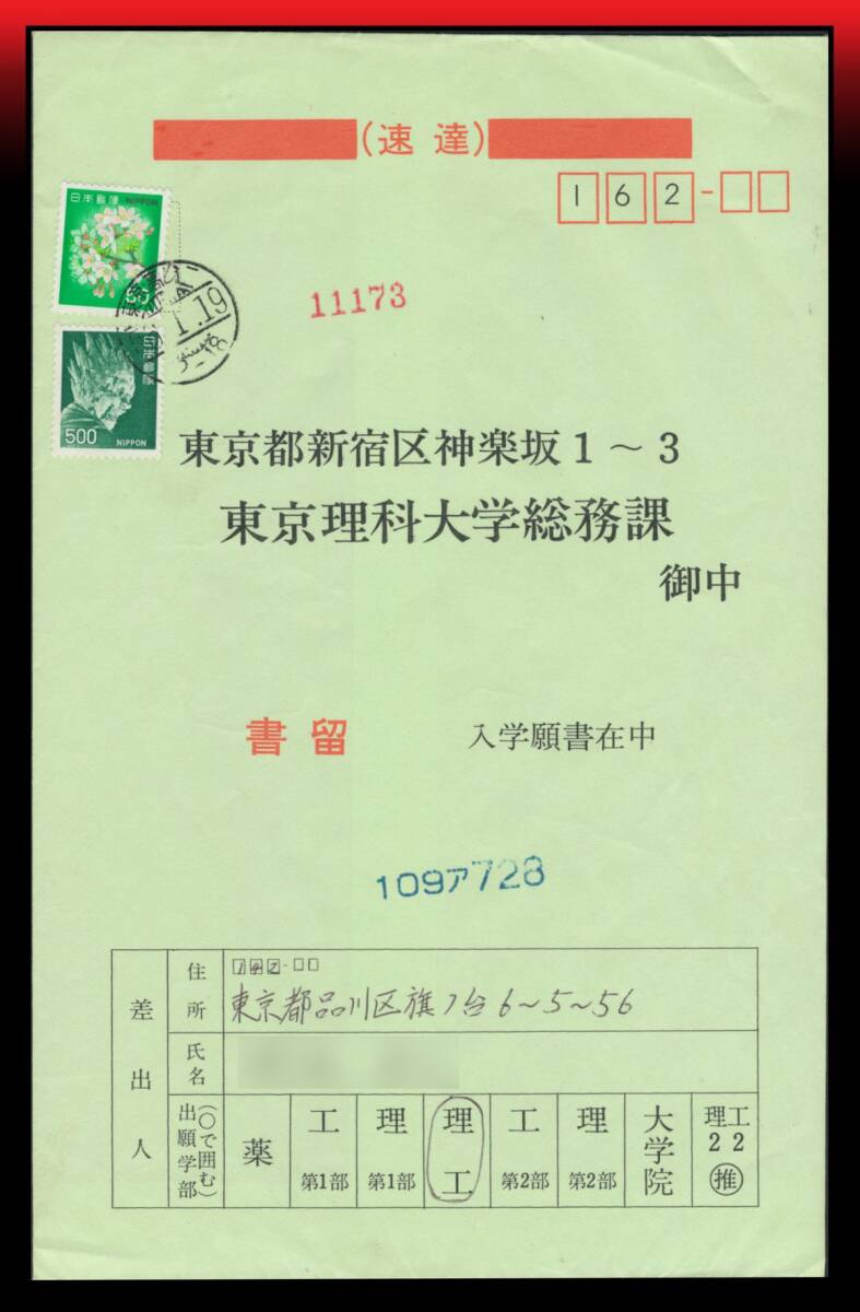 H71 料金最終日|大将500円桜50円/書留300円速達150円定形外書状100円 櫛型印:東京高(輪)二/56.1.19/12-18 定形外発送※ エンタイア
