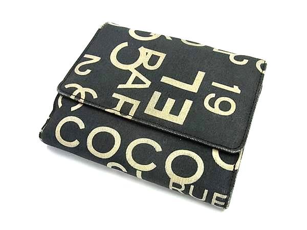 1円 CHANEL シャネル ココマーク バイシーライン キャンバス 二つ折り 財布 ウォレット 札入れ 小銭入れ グレー系×アイボリー系 FV2823