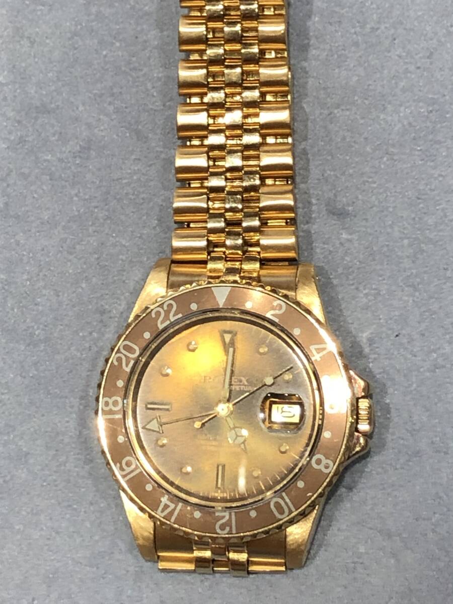 大変希少なロレックスの1970年代後期のGMTマスターの金無垢モデル16758になります。