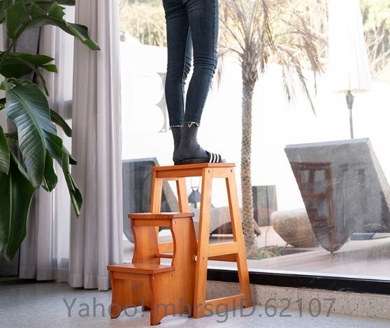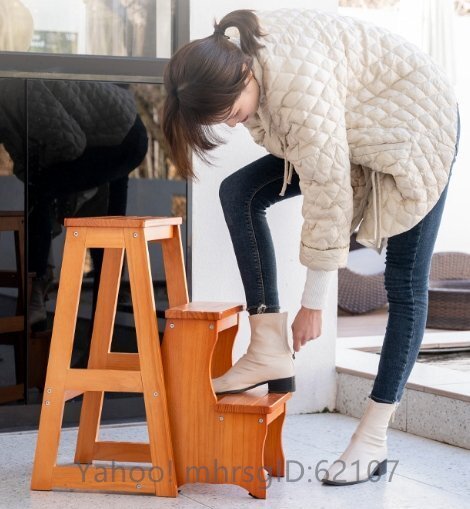 家庭用実木多機能折りたたみスツール収納シート滑り止めペダル荷重脚立携帯省スペース