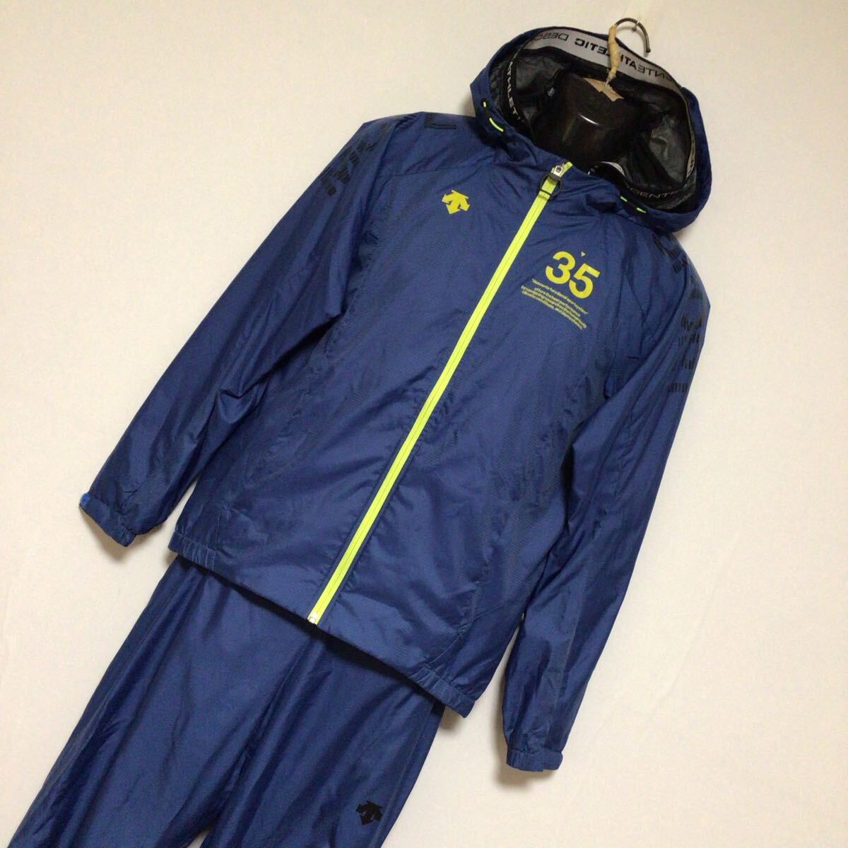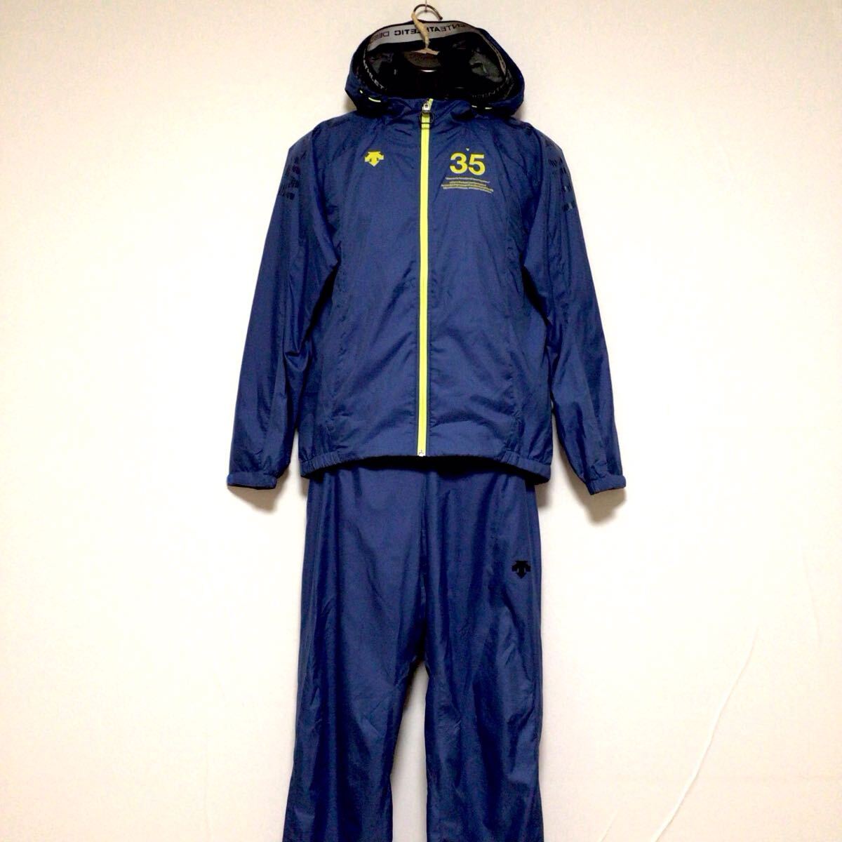 デサントムーブスポーツウインドブレーカー上下セットになります。しっかりとした薄手のポリエステル生地、ロゴプリントが施されております。目立った大きなダメージも無く状態良好です。とてもオシャレな作りとなっておりますので是非オススメです。