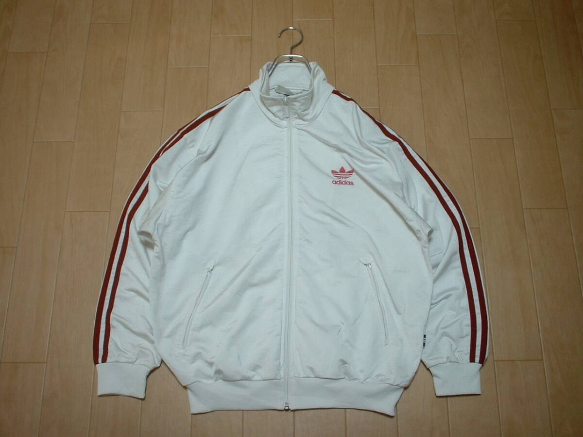 90sビンテージadidasスリーストライプスジャージトップM白ホワイト万国旗タグ正規オールドアディダストラックジャケットトレフォイル刺繍