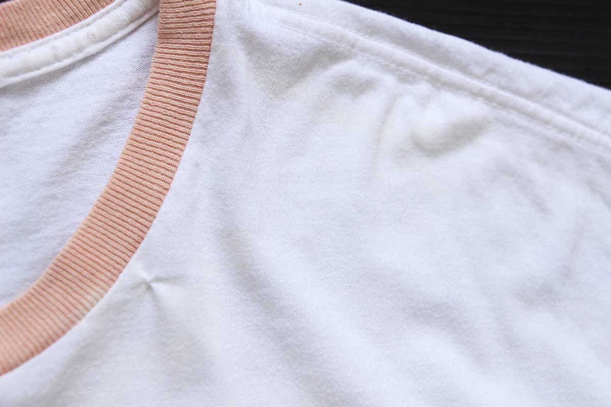 コンディション:着用感があり、所々に多少の薄汚れ、フロント左ネック付け根に細かいリペアがあります。目立つダメージや酷い汚れはなく、生地もしっかりしていて、古着慣れされている方なら問題なく着用いただける程度です。