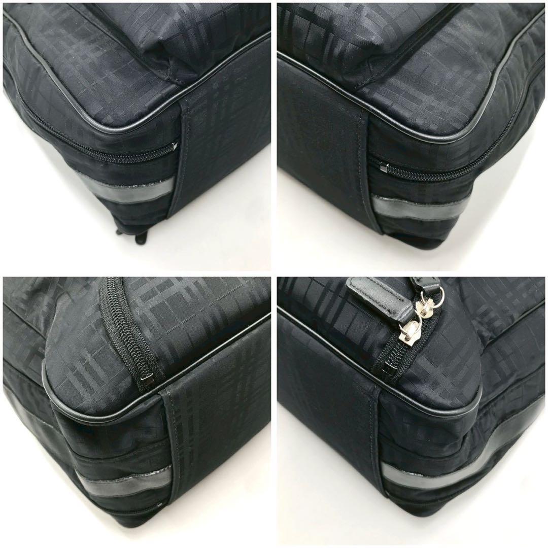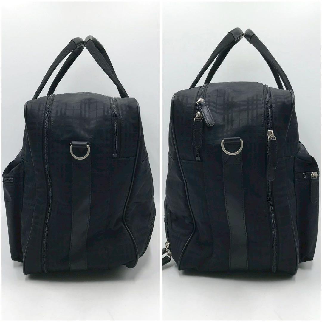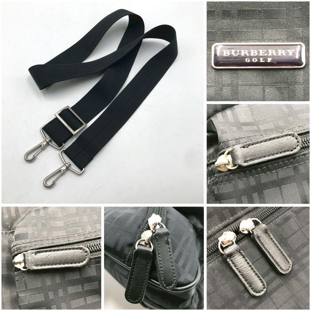 未使用級/大容量●バーバリーゴルフ BURBERRY GOLF ボストンバッグ ショルダー チェック ロゴプレート 裏地総柄 レザー 黒 ビジネス メンズ