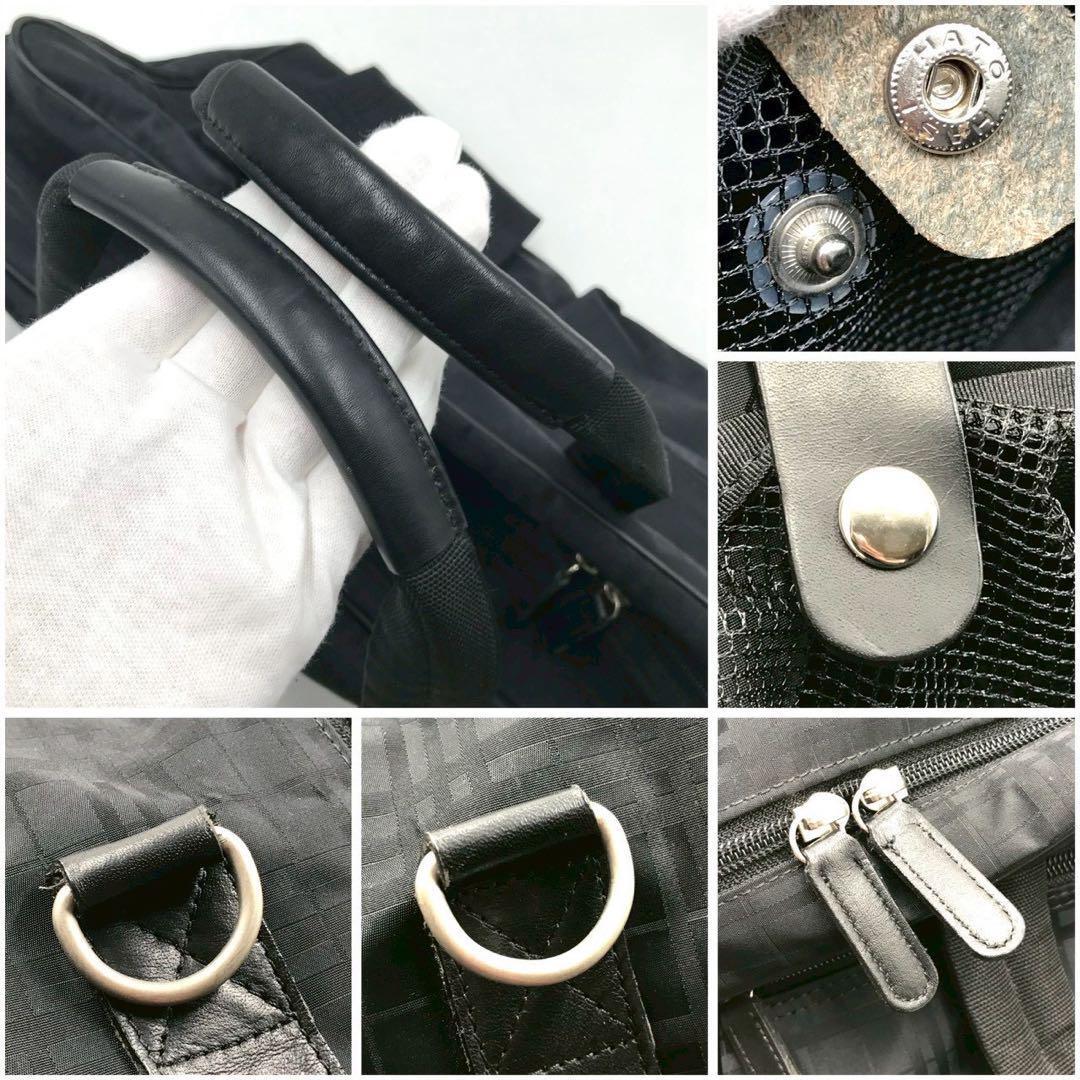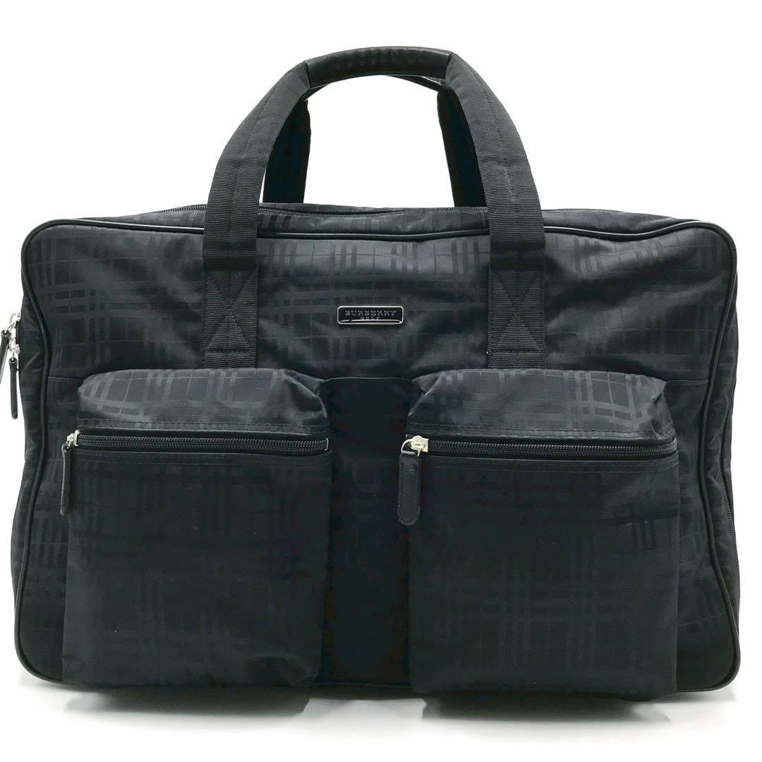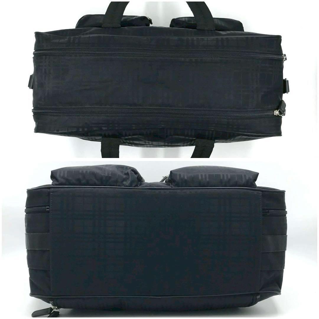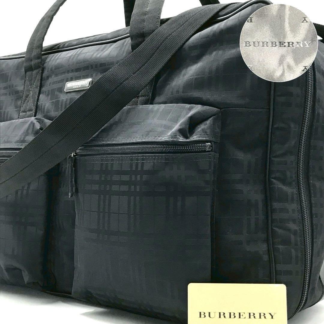 未使用級/大容量●バーバリーゴルフ BURBERRY GOLF ボストンバッグ ショルダー チェック ロゴプレート 裏地総柄 レザー 黒 ビジネス メンズ