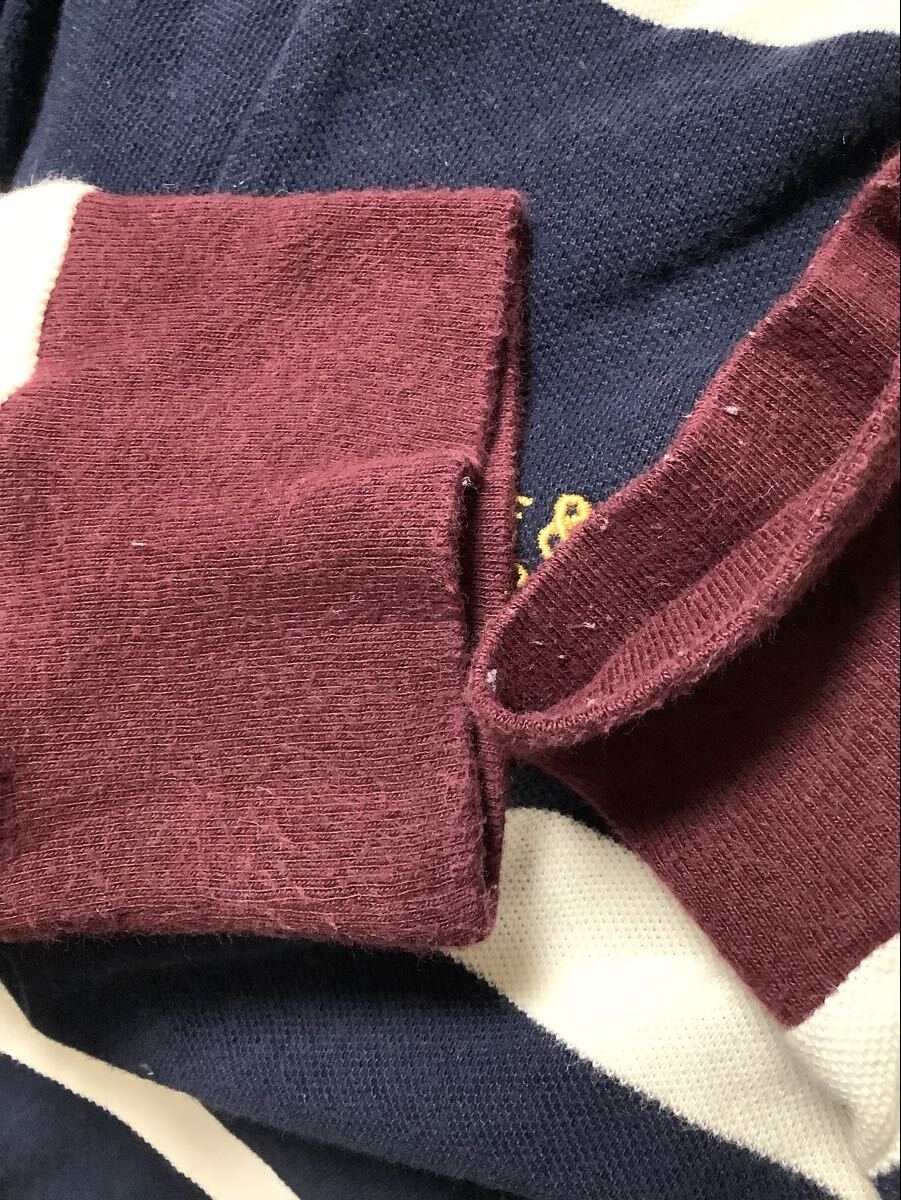 使用状況 :中古、多少の使用感、毛羽立ち、襟に色褪せがあります。