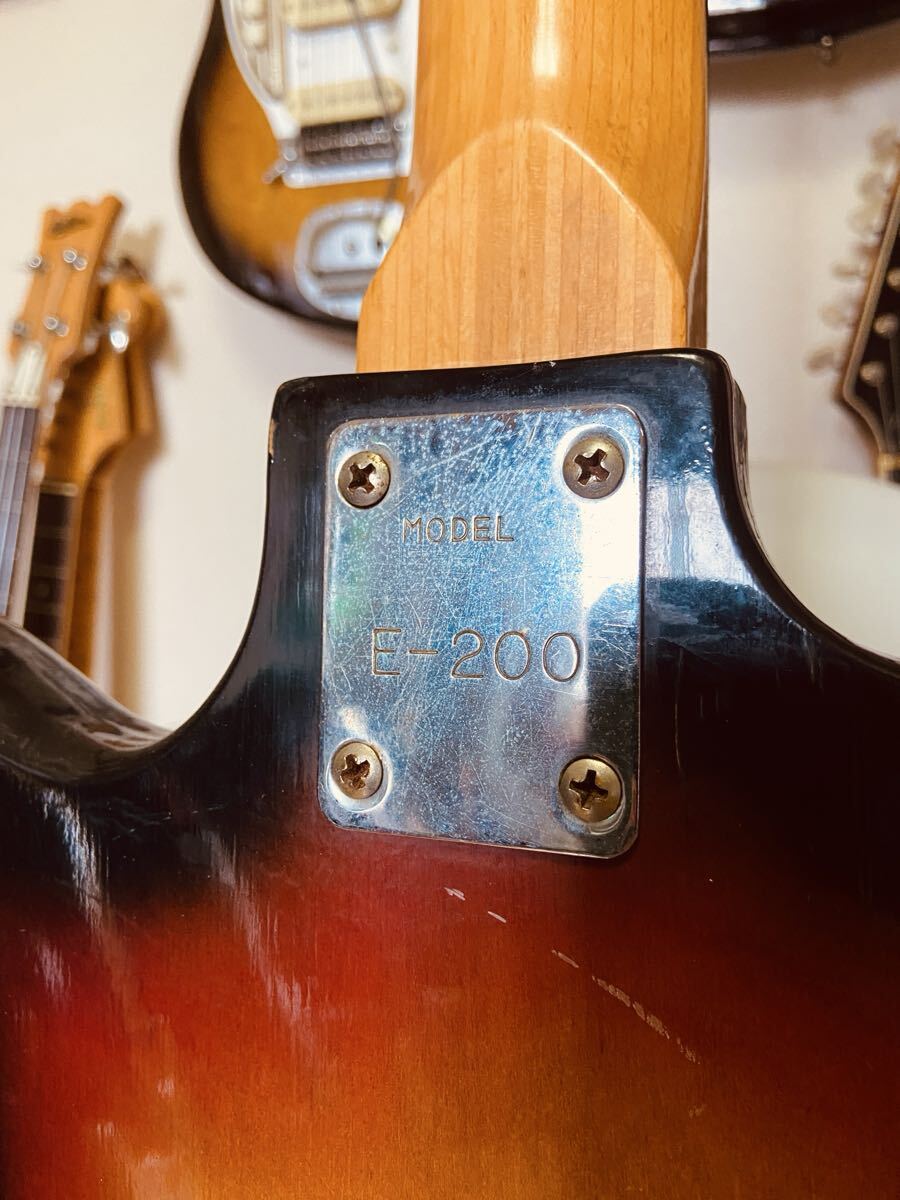 国産エレキの黎明期に製造されたこのE-200は、日本から世界へ羽ばたいた最初の「Del Rey」シリーズの象徴であり、現存する個体はごくわずか。ワンピックアップ仕様の姉妹機のE-100よりグレードは上となります。