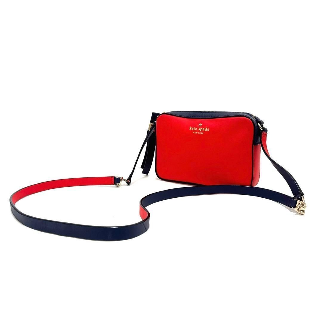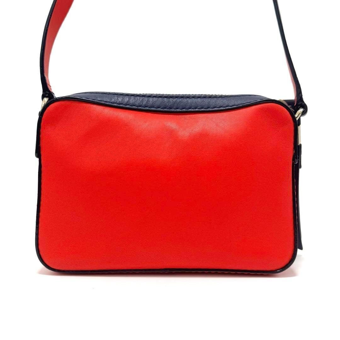 レッドとネイビーの色味が素敵なバイカラーのショルダーバッグです♪ 持ち運びがしやすいサイズながら内側にはポケットが付いているので荷物もしっかり収納することができます! |