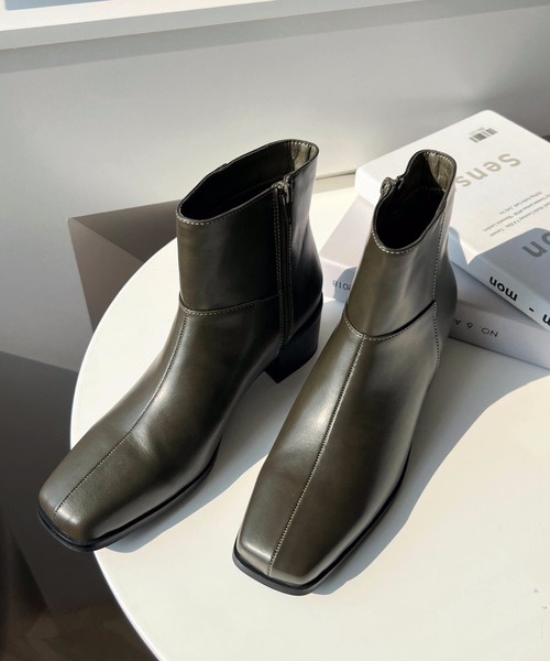 参考商品名:スクエアトゥ ローヒールブーティブーツ