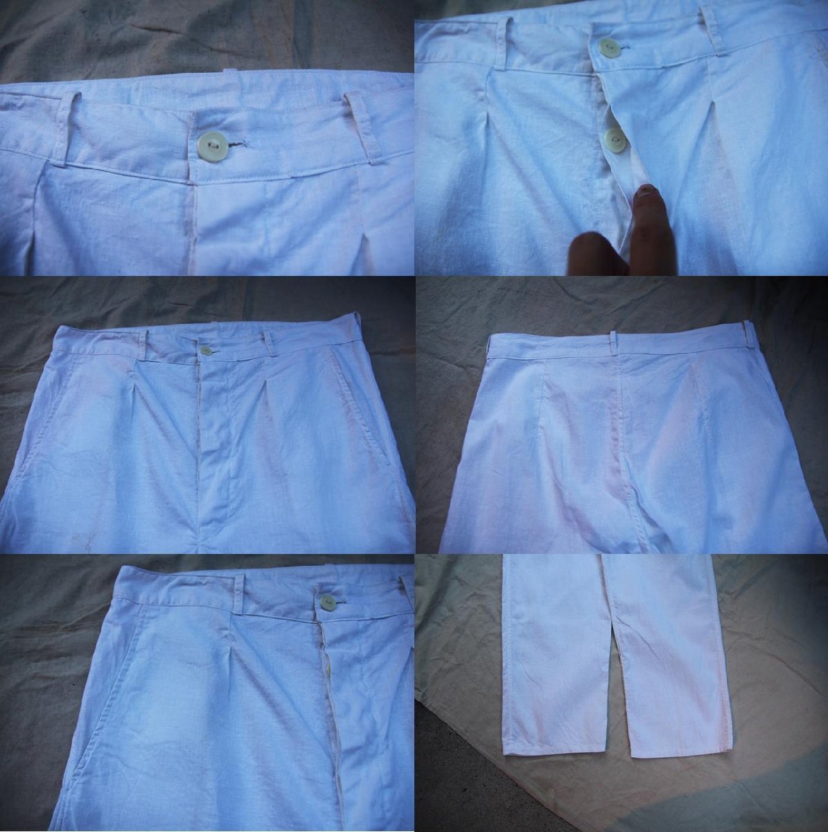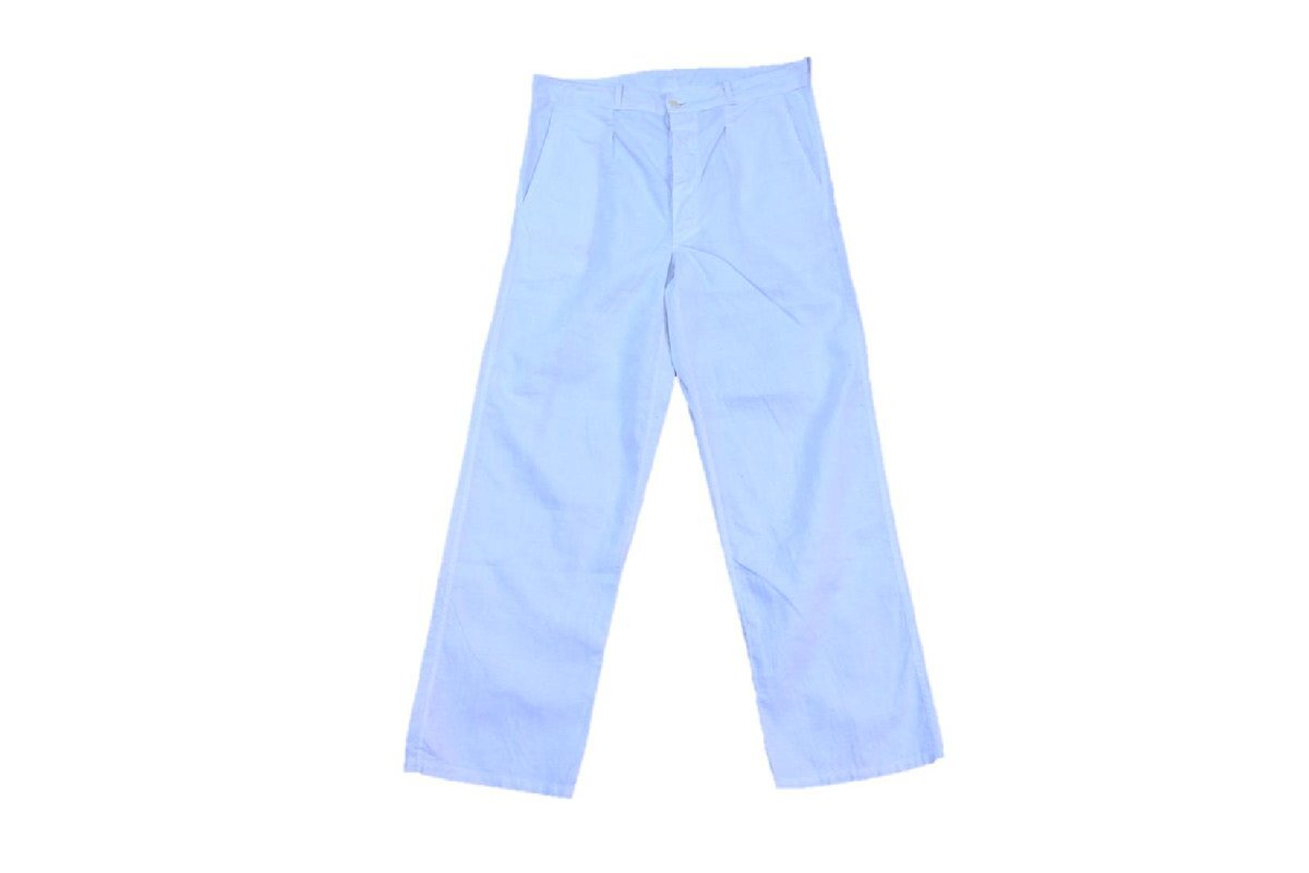1960年代から70年代頃のブランド不明のワークパンツとなります。ボタンや形状から恐らくユーロ製のワークパンツで素材はライトキャンバス風な表面にザラ感があるコットン、タック入りでボタンフライでルーズながらも多少テーパードが効いたシルエットとなります。白パンツの中でも比較的珍しいタイプのパンツですのでサイズの合う方は是非ご検討下さい。