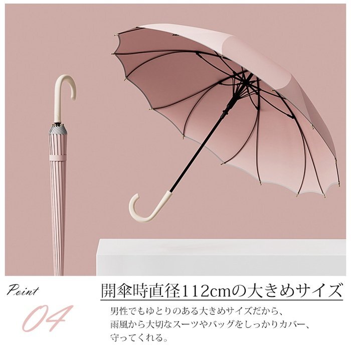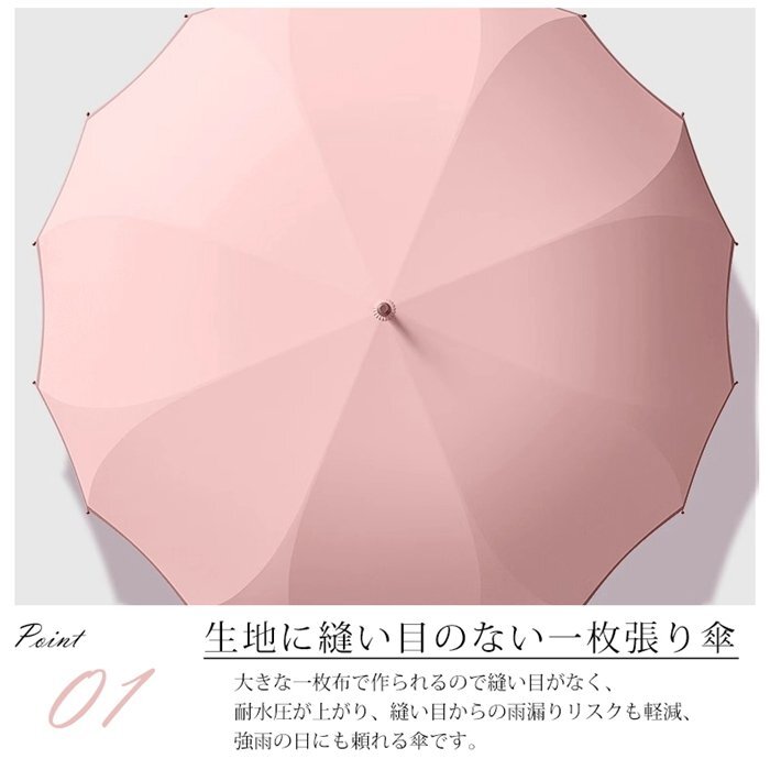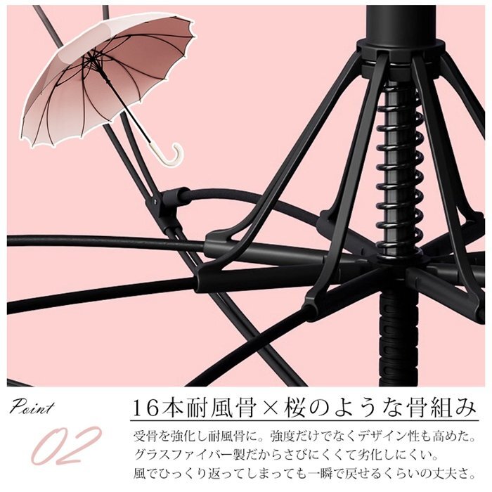 一枚張り 長傘 シームレス 16本骨 レディース おしゃれ ジャンプ式 風で裏返っても戻る 耐風 桜骨 グラスファイバー 雨傘 丈夫 風に強い さくら サクラみたいな形の骨の傘 お花の様な 花みたいな傘 花びらみたいな傘