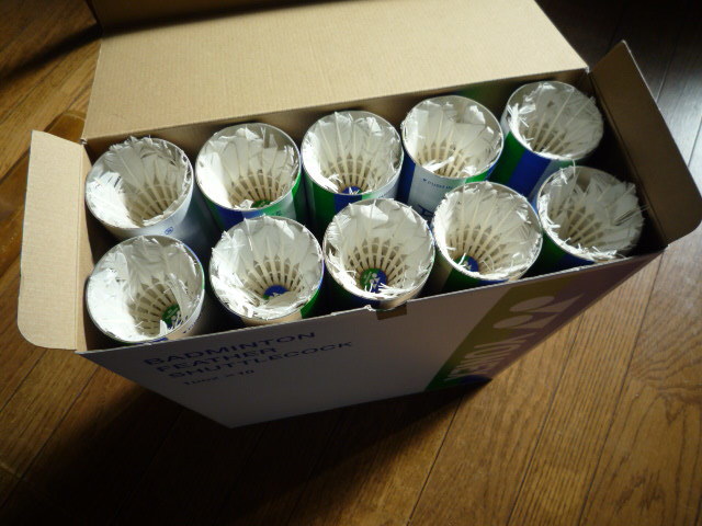 写真の通り,シャトルの入っていた箱に13個ずつ筒に入れて10本分を1箱に詰め,3箱セットで発送します.