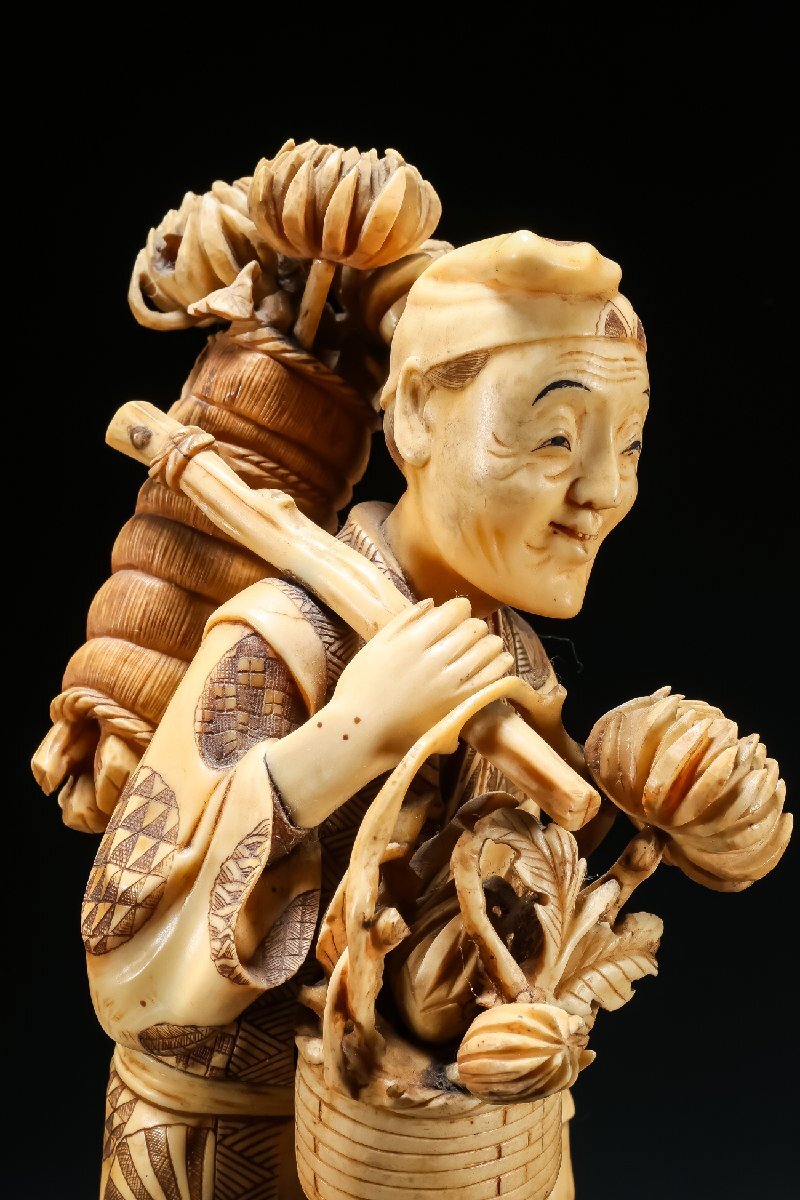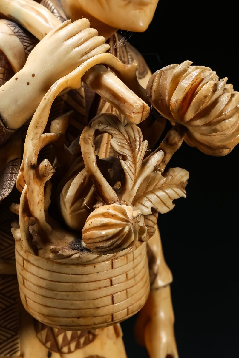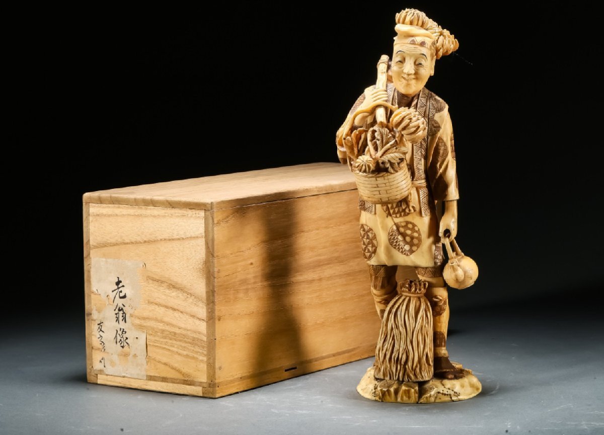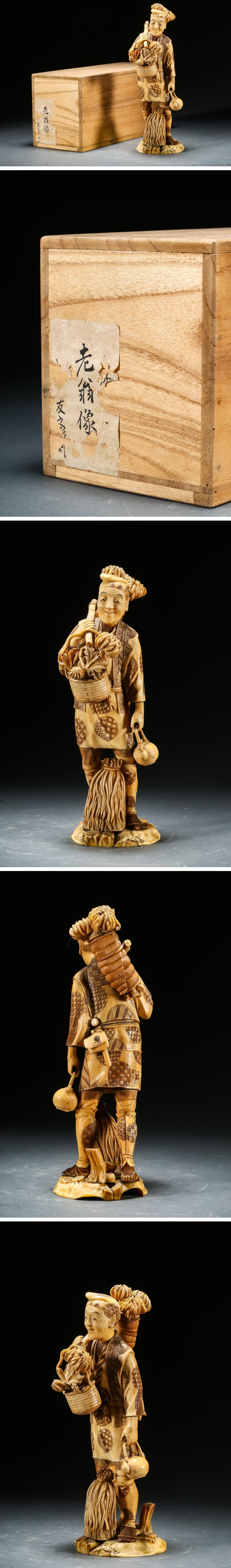 【雲錦】某有名オークション購入 時代物 友之刻 巨大籠屋置物 共箱 古置物 古擺件 古美術 時代コレクション74S-176S4