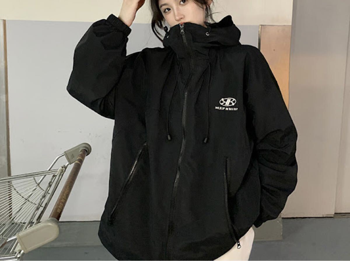 ゴープコア シンプル ジャケット フルジップ スポーツ アウトドアスタイル ブラック になります☆