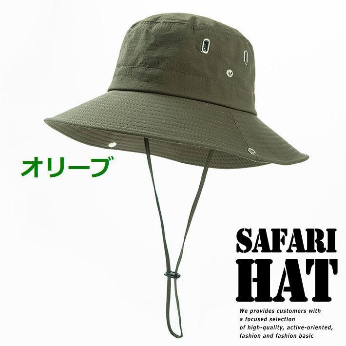 サファリハット ハット アドベンチャーハット アウトドア キャンプ 釣り 日焼け止め 速乾 通気性 7987006 オリーブ 新品 1円 スタート