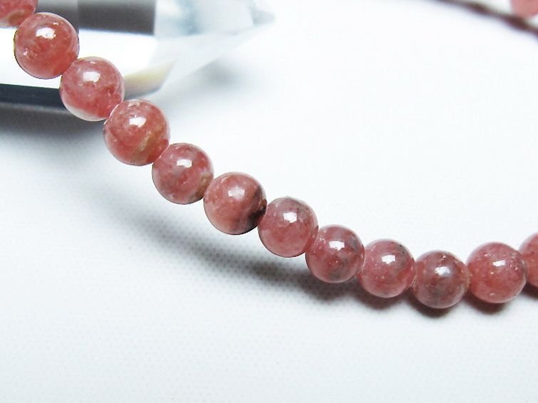 ■商品名: インカローズ(ロードクロサイト)ブレスレット ■商品ID: T16-15141 ■商品重量:約 8.3g ■商品サイズ:内周約:155mm(±5mm)粒直径約:5mm(±0.5mm) 【インカローズ(ロードクロサイト)】 インカローズの正式な鉱物名は「ロードクロサイト」と呼び、「インカローズ」はインカ帝国の栄えたアンデス山脈から産出されるバラ色の石という意味を持つ流通名です。 インカローズはピンクや赤の地色に白色の縞模様が入っているのが特徴で、赤みが強く透明度の高いものほど価値が高いとされます。 加工することによって模様がバラが咲いたように見えることから、インカローズはアクセサリーとして特に女性から絶大な人気を誇っています。 「情熱の薔薇」とも呼ばれるインカローズは、出会うべき人や前世からの繋がりを持ったソウルメイトを引き寄せて運命的な出会いと愛情に満ちた生活をもたらすとされています。 またヒーリング効果も高く、癒しの効果はローズクォーツよりも強力かつ即効性が高いとされ、些細なことに悩みがちだったり傷つきやすいという方には優しくも心強いサポートが得られるでしょう。 ⇒ インカローズをもっと詳しく ◆ワンポイント情報 インカローズは硬度が3.5~4と低いために傷つきやすかったり、日光に長時間当たることで褪色しやすいなど、繊細な石でもあります。取り扱いや保管には十分に注意してください。 |
