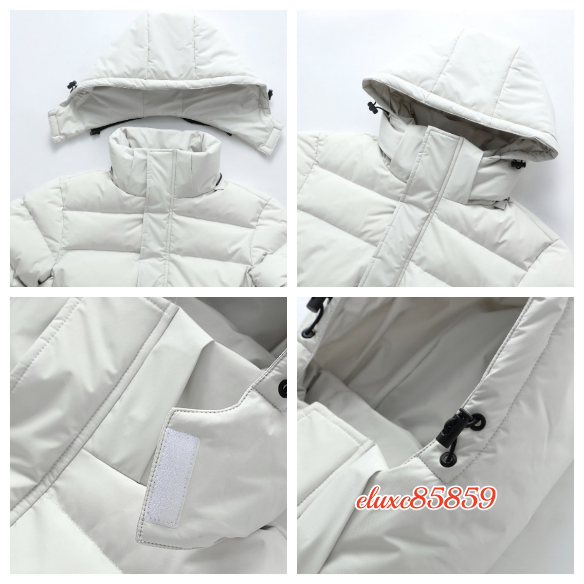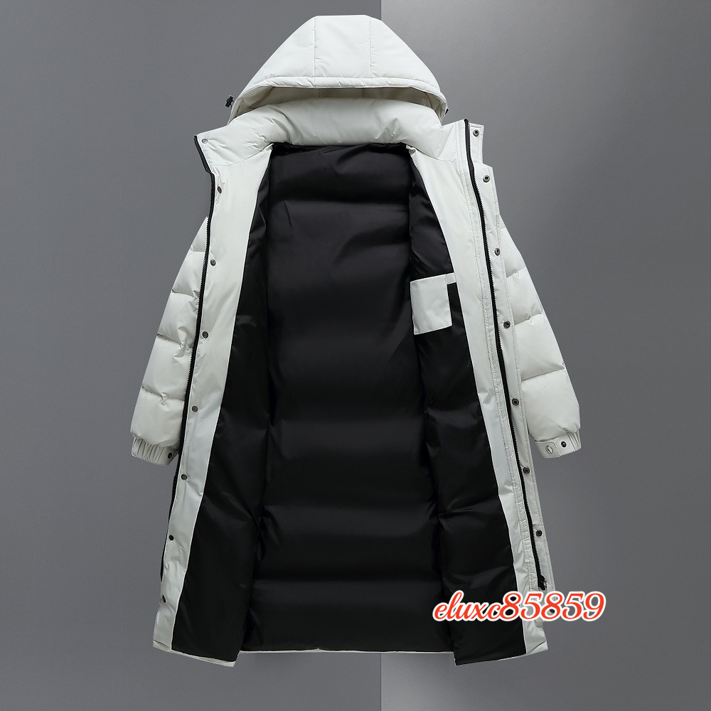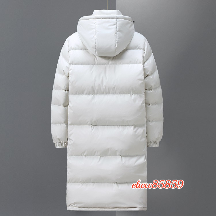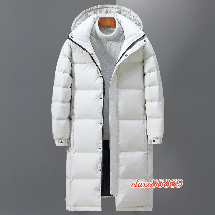 ダウンジャケット メンズ ロング ダウンコート 防寒防風 過膝 フード付き ライトダウン 700フィルパワー アウトドア スキー 白 L