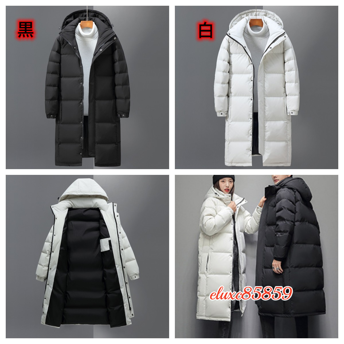 ダウンジャケット メンズ ロング ダウンコート 防寒防風 過膝 フード付き ライトダウン 700フィルパワー アウトドア スキー 白 サイズ選択可L