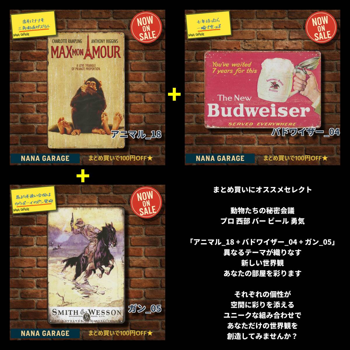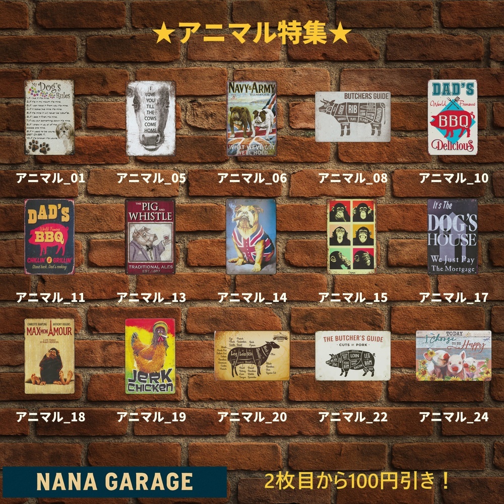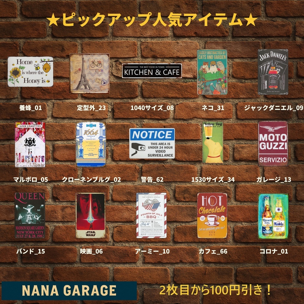 海外直輸入のヴィンテージ風ブリキ看板を中心に、