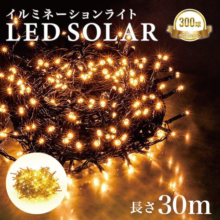 明るさセンサー付きで暗くなると自動点灯! 今の時代に最適なエコ商品!! 省エネ・長寿命なLEDライトは発熱がほとんどなく、植物に巻いても安心・安全! 屋外でも安心して使用できるようにIP44の防水加工。 多彩な8パターンの点灯モード搭載! コンセント不要なので、電源のない所でも自由にイルミネーションを楽しめます。 LEDを飾り付け、ソーラーパネルを太陽光が良く当たるところへ設置していただくだけで、簡単にご使用いただけます。 お庭の植え込みに、テラスやベランダに! クリスマスイルミネーションにピッタリです! 【商品詳細】 カラー:ホワイト×シャンパン LED:300球 点灯パターン:8パターン 防水仕様:IP44 サイズ(約) ソーラーパネル:縦14cm×横9.5cm×厚さ2.5cm 支柱:20cm 電球の間隔:5cm コードの長さ(全体):32m (うちイルミネーション:30m) (ソーラーイルミネーションライト LEDライト ガーデンライト ライトアップ 防犯 クリスマス飾り クリスマスツリー 明るい 自動充電 電源不要 配線不要 夜間自動点灯 庭 ベランダ バルコニー 玄関 店舗 お店 オフィス パーティ 人気 おすすめ WEIMALL) |