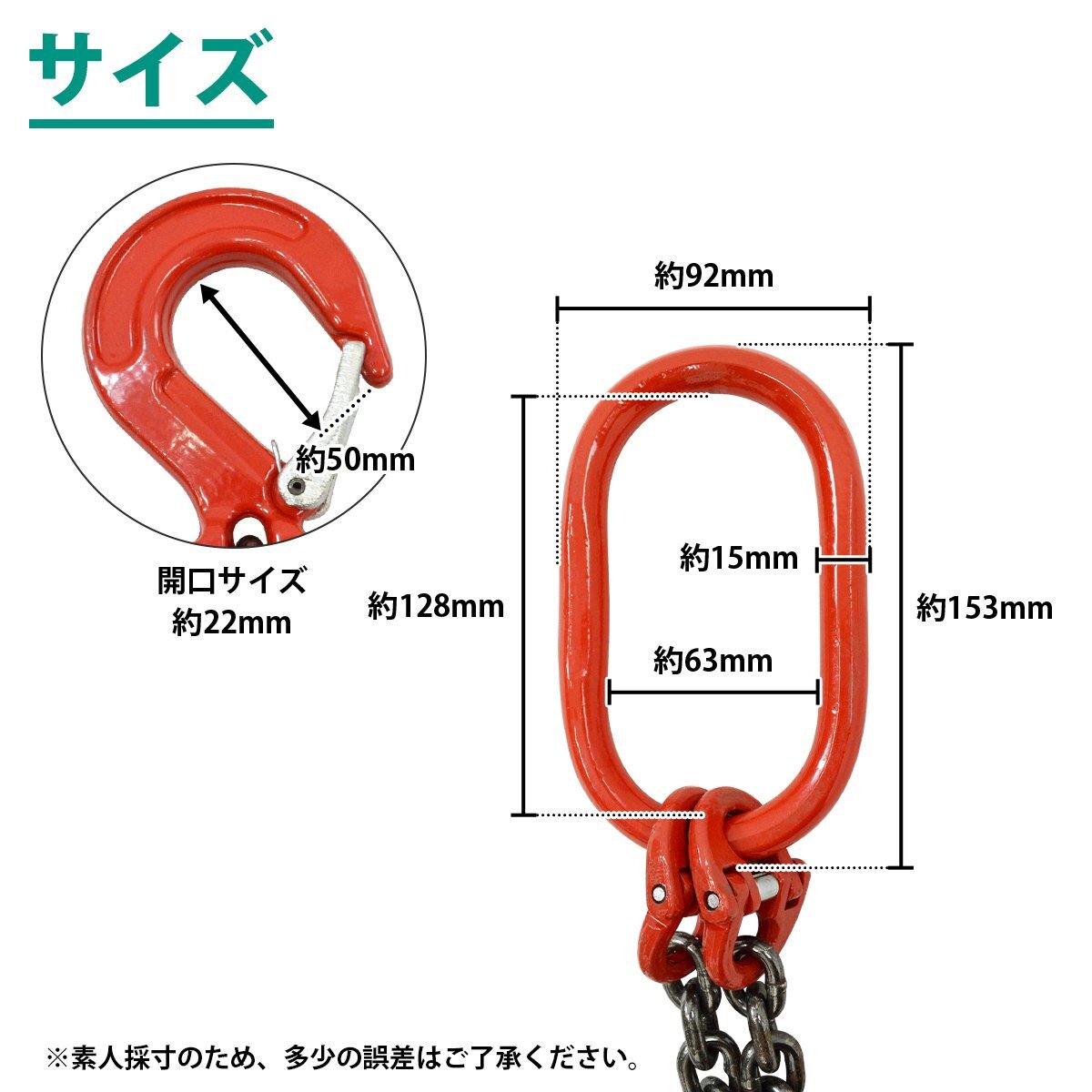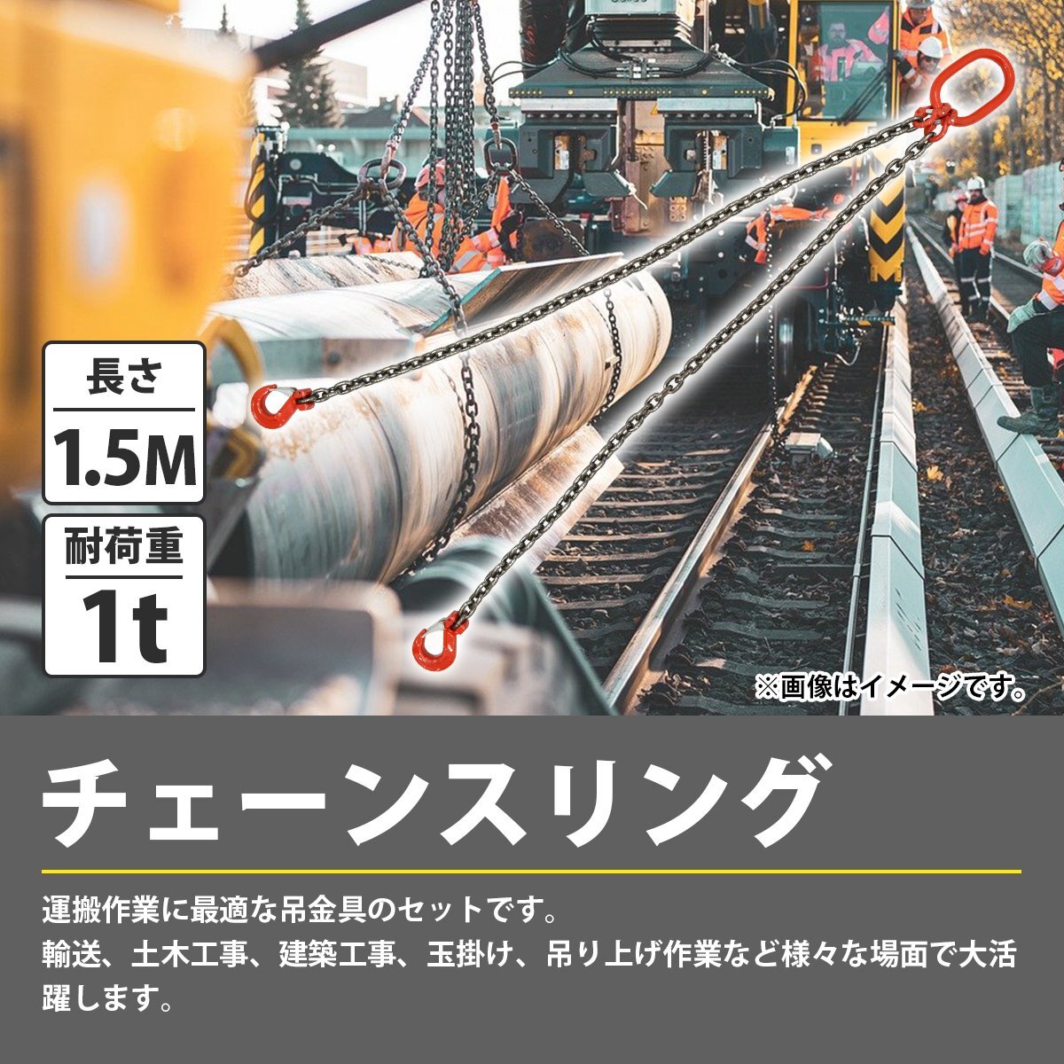 【新品即納】[ 1t 1.5M ]2本吊り チェーンスリング 吊り スリング チェーン フックタイプ リング付き 径6mm 長さ 1.5m 耐荷重 1000kg