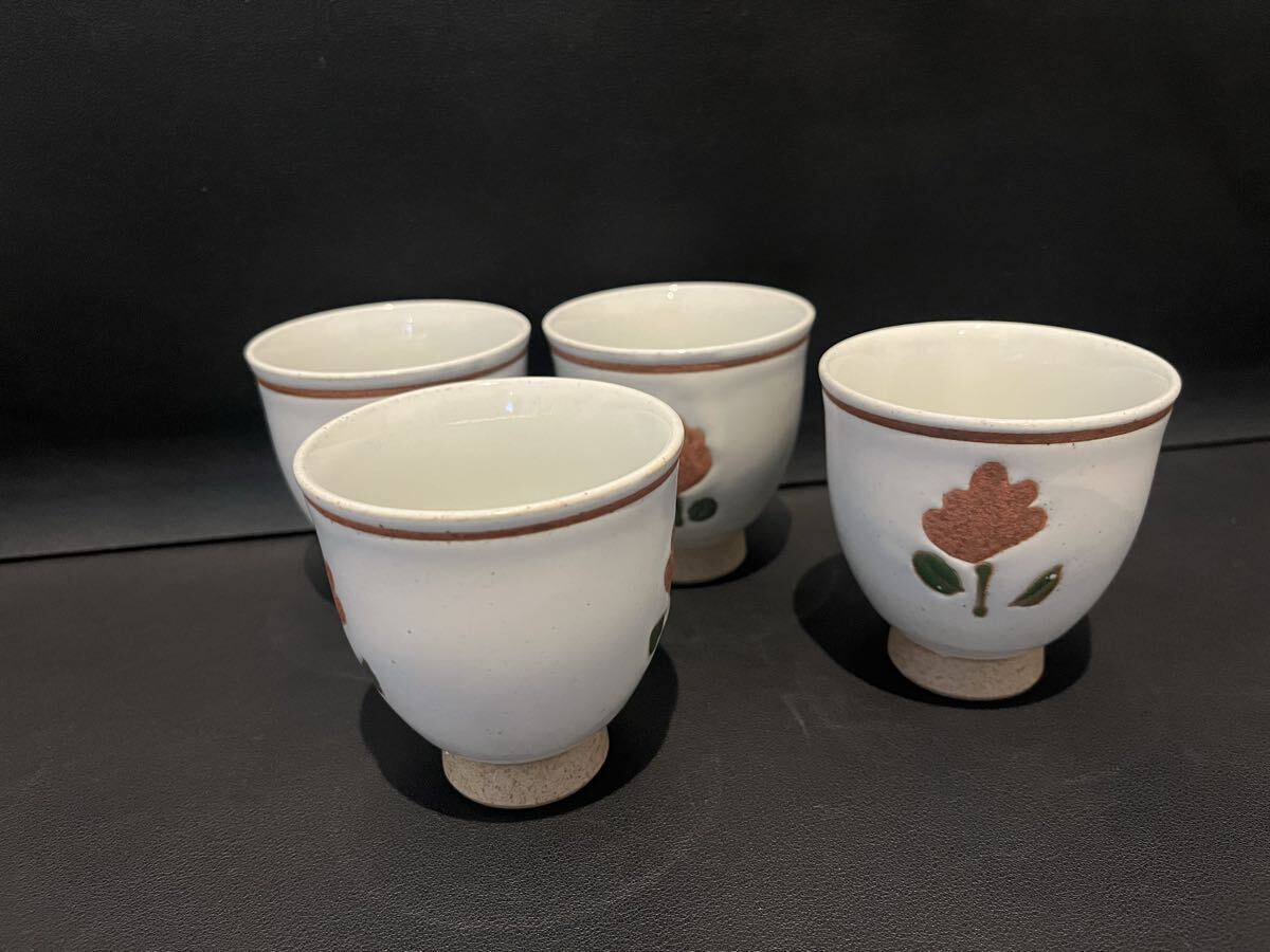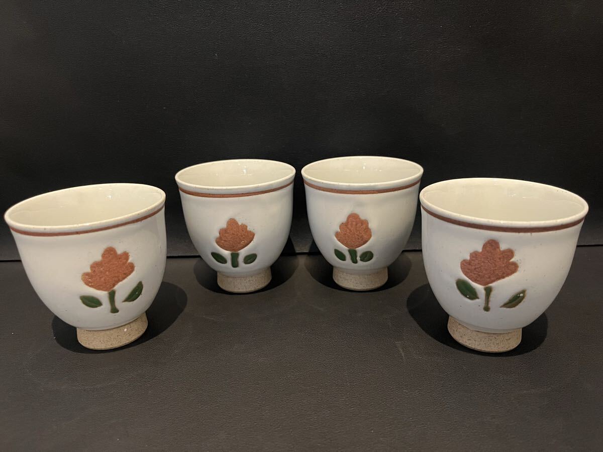湯呑み 花柄 和食器 レトロ 4客