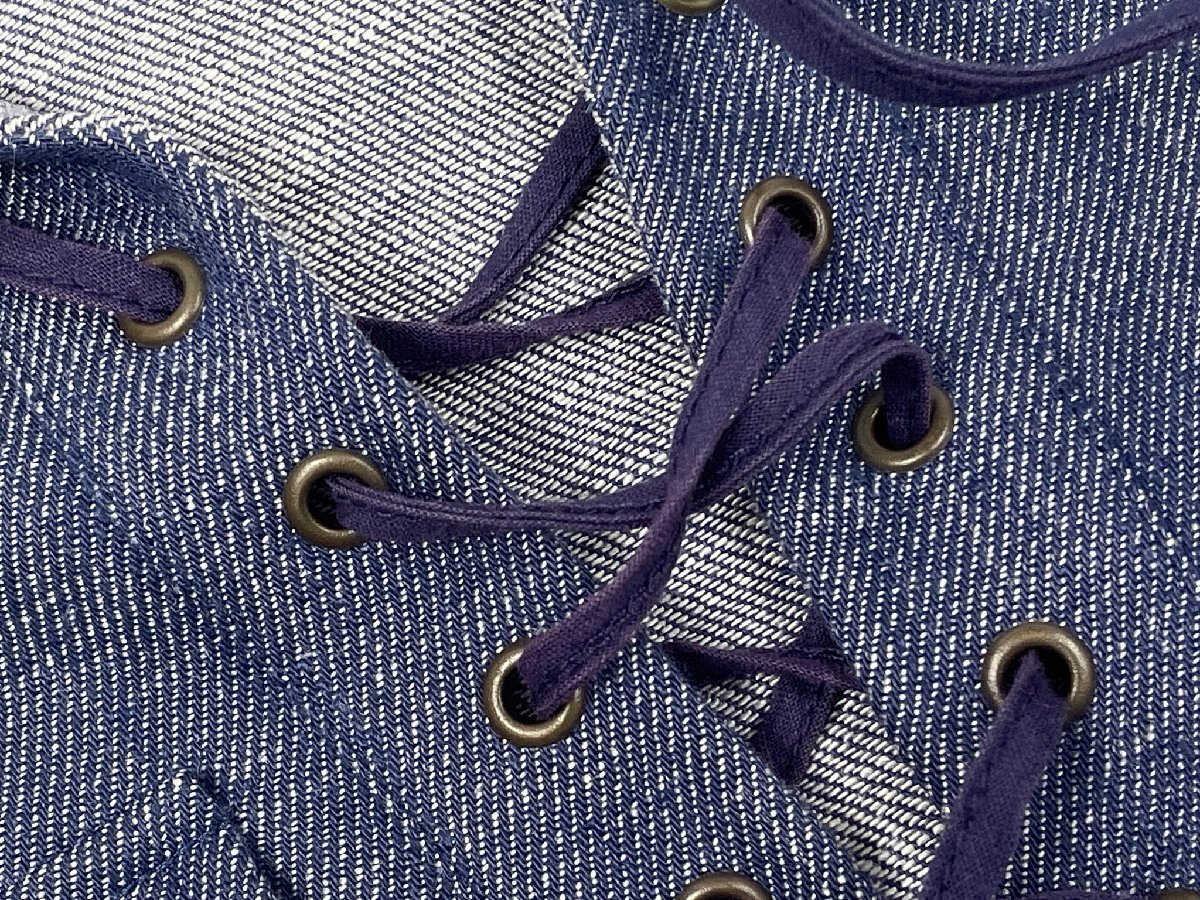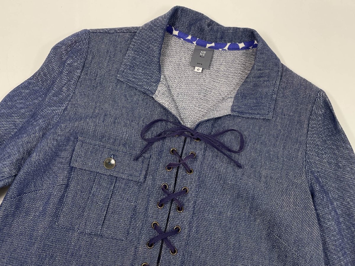超美品【ANNE WILLI アンヌウィリー】75011 レースアップ デニムワンピース (レディース)size0 ネイビー×ホワイト バイアス織◇32LO3841◇