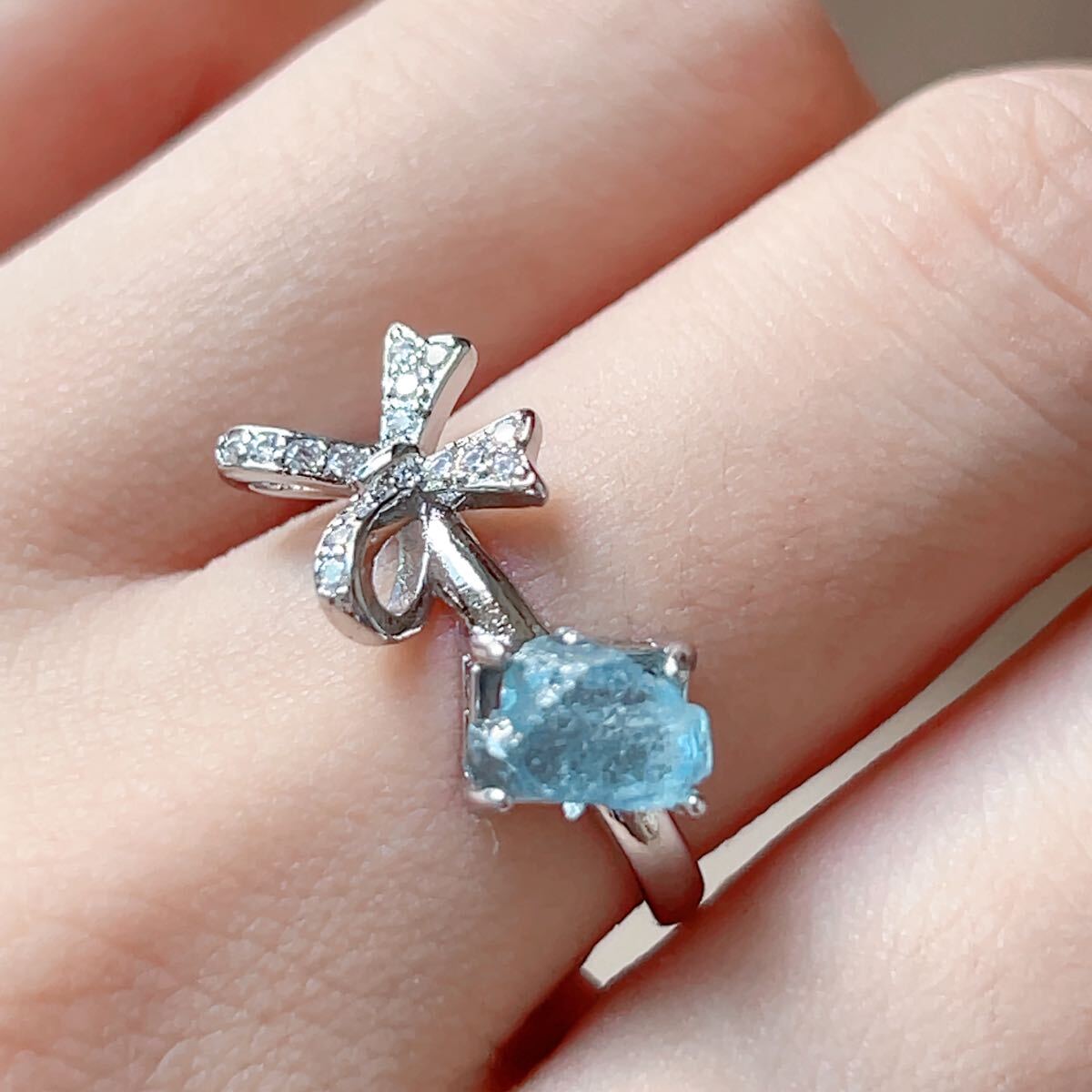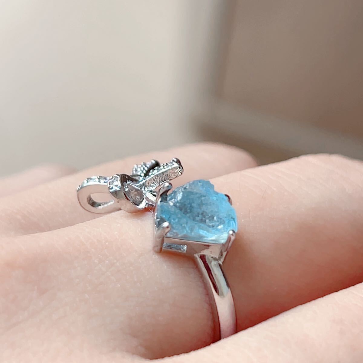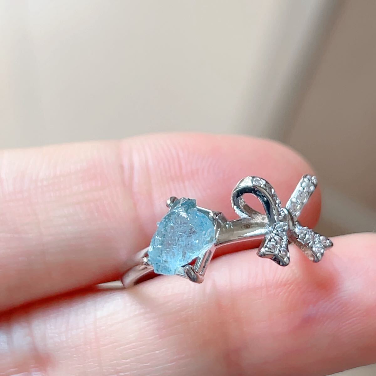 ◇アクアマリン◇指輪◇ 色濃いめ◇リング◇フリーサイズ◇天然石◇パワーストーン◇巾着袋付◇プレゼントにも  041R101451